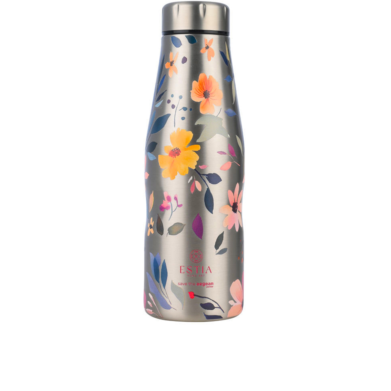 Insulated bottle flask SAVE THE AEGEAN 500ml silver botanic