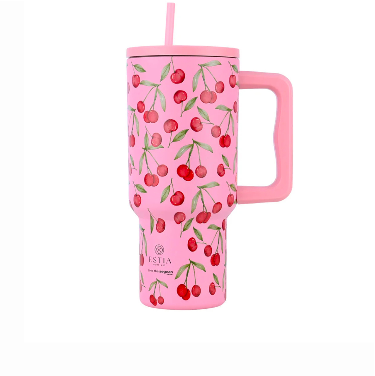 Insulated Straw tumbler XL SAVE THE AEGEAN 900ml cherry rose
