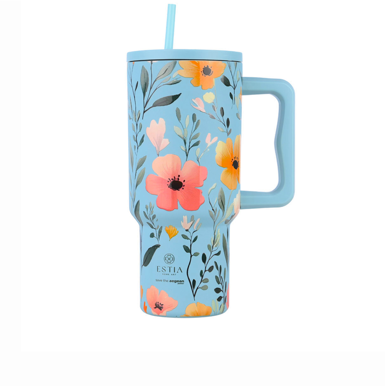Insulated Straw tumbler XL SAVE THE AEGEAN 900ml sky garden