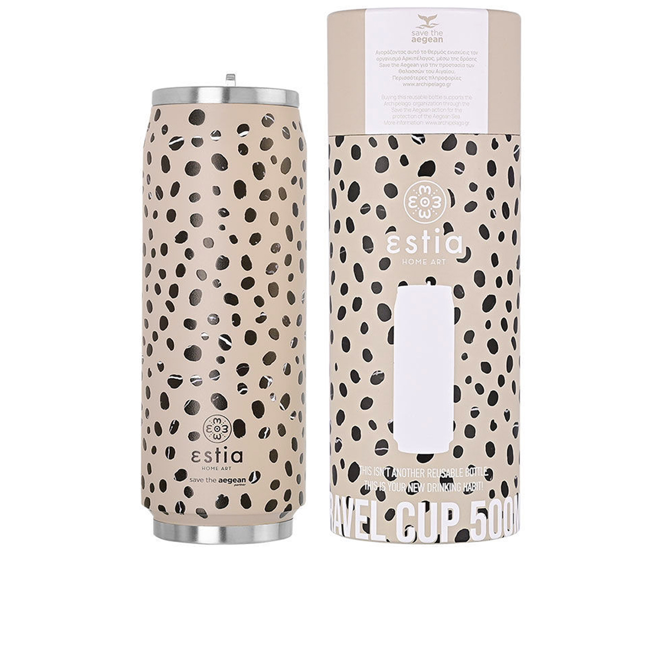 Insulated travel cup 500ml SAVE THE AEGEAN leopard taupe