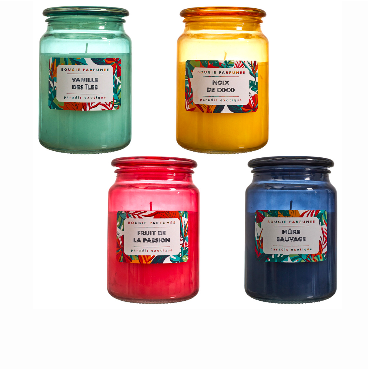 Scented candle in glass container PARADIS 4 parfumes 9×14,5cm BO0116
