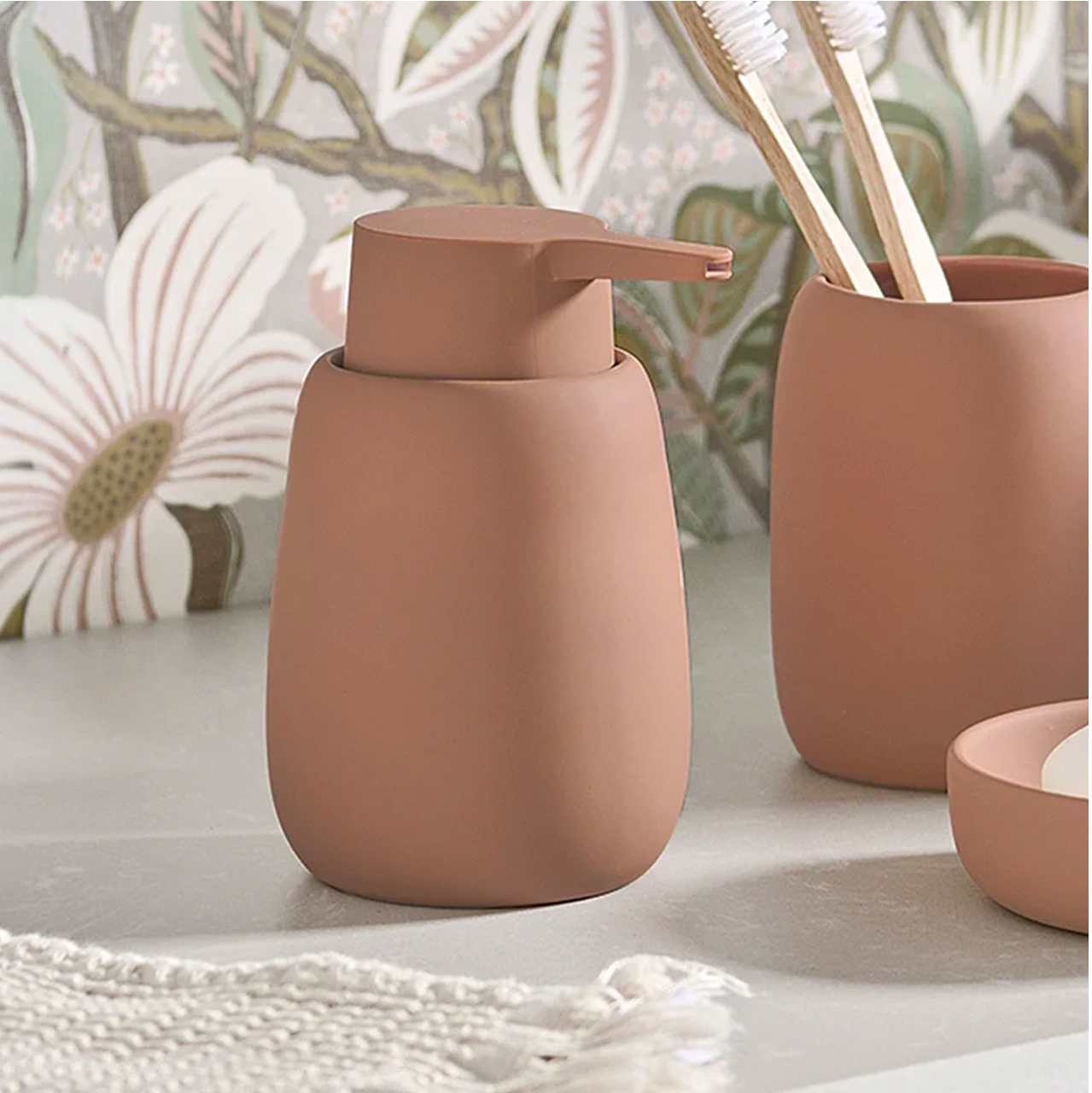 Practical and stylish, this ceramic dispenser in a modern mocha color is ideal for liquid soap or lotion. The elegant pump offers easy use and the matte finish gives a modern feel to the space. Durable and easy to clean, it is an ideal addition to a stylish bathroom.