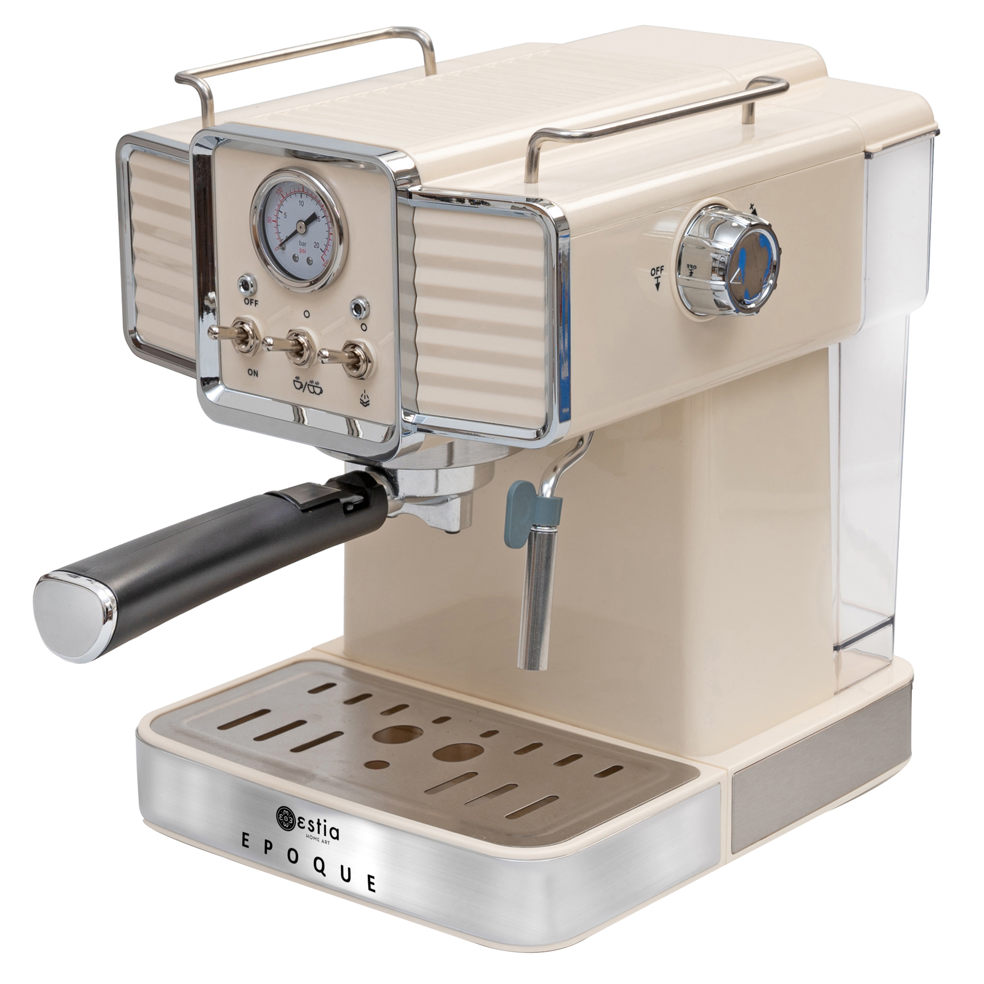 Practicality and style are combined in order to make every kitchen stand out! The Epoque espresso coffee maker with a 20 bar 1350W pump makes espresso with delicious froth milk in every use. It has practical start, coffee flow and steam buttons that make it easy to use as well as a bar meter with pressure indication. With steamer and steam flow control button for froth milk and water or milk heating. Combine the espresso coffee maker with the Estia Home Art Epoque Series toaster and kettle and add a retro touch to your kitchen!