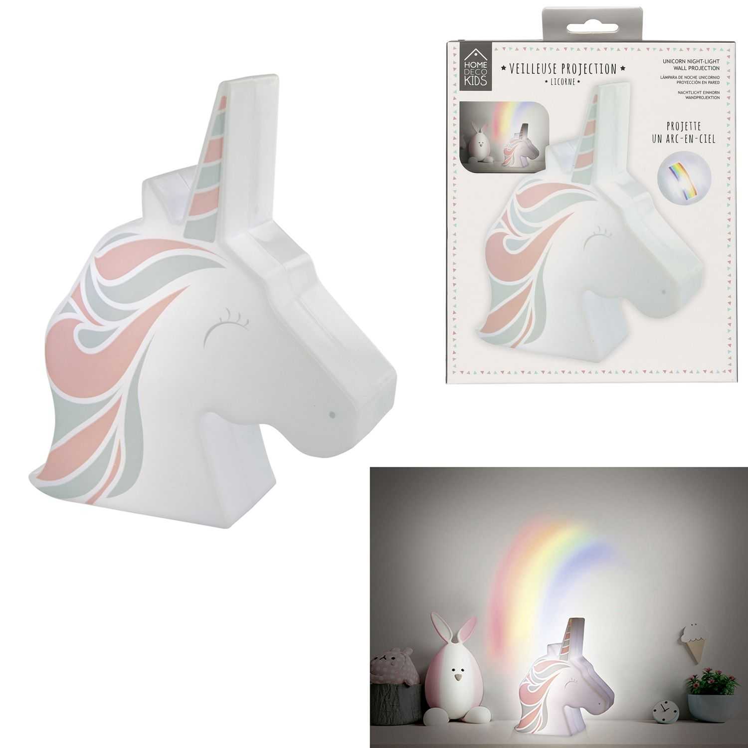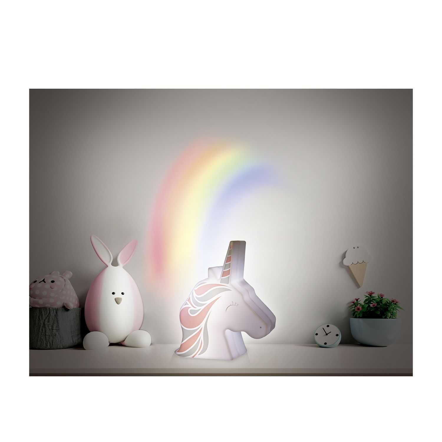 For a sweet night, choose the unicorn projector night light. It projects a rainbow and beautifully decorates the childrens room!