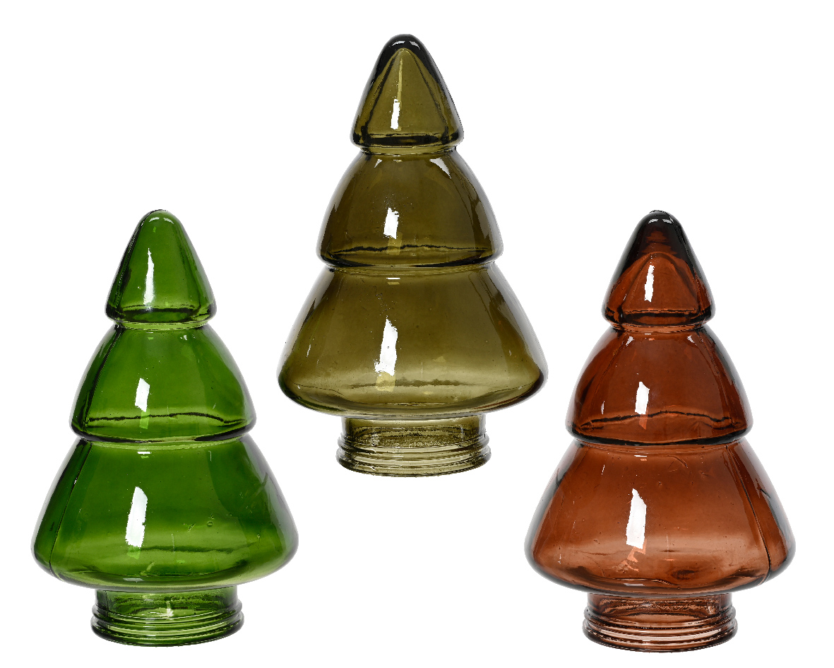 Glass tree available in three colors with a diameter of 10cm and a height of 15cm. This tree adds a festive atmosphere to your space and is perfect for Christmas decorations or as a unique decorative piece. Choose your preferred color.