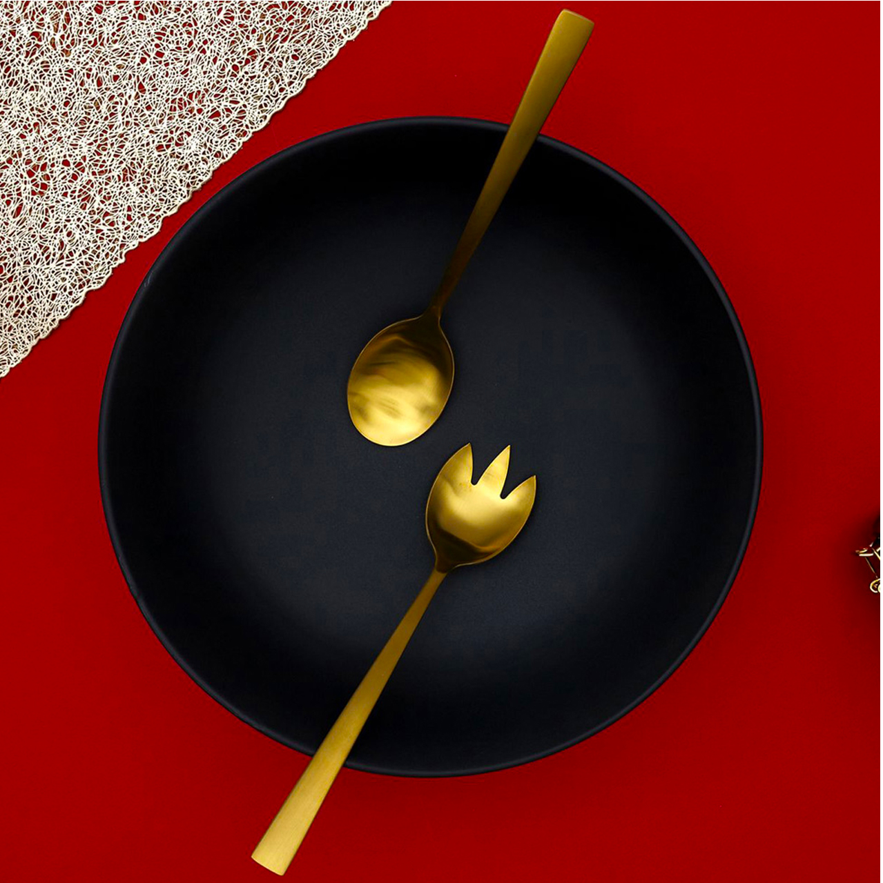 Σερβίρετε τη σαλάτα σας με στυλ με αυτό το ζευγάρι χρυσών μαχαιροπίρουνων.