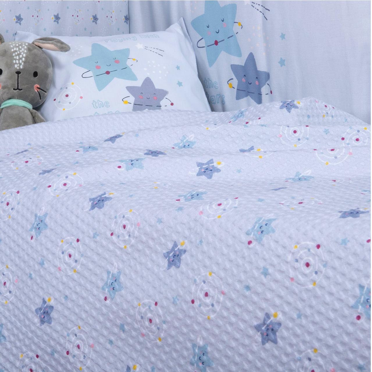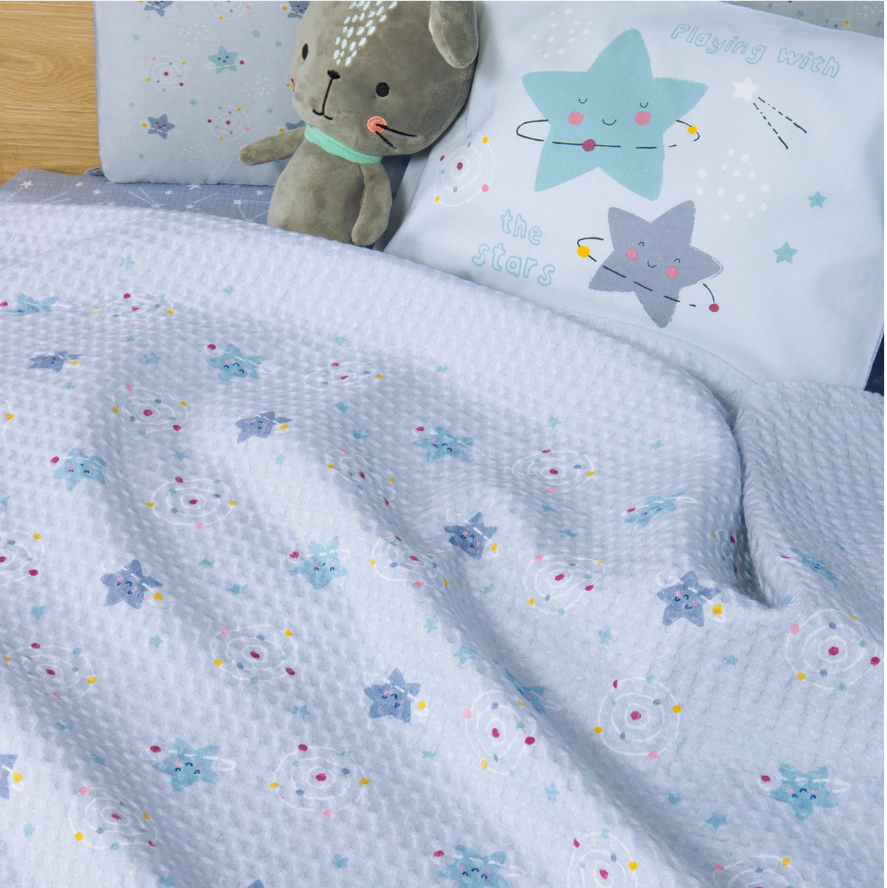 NEF NEF HOMEWARE BABY EXPLORE THE UNIVERSE κουβέρτα πικέ αγκαλιάς 80x110cm light blue 037367