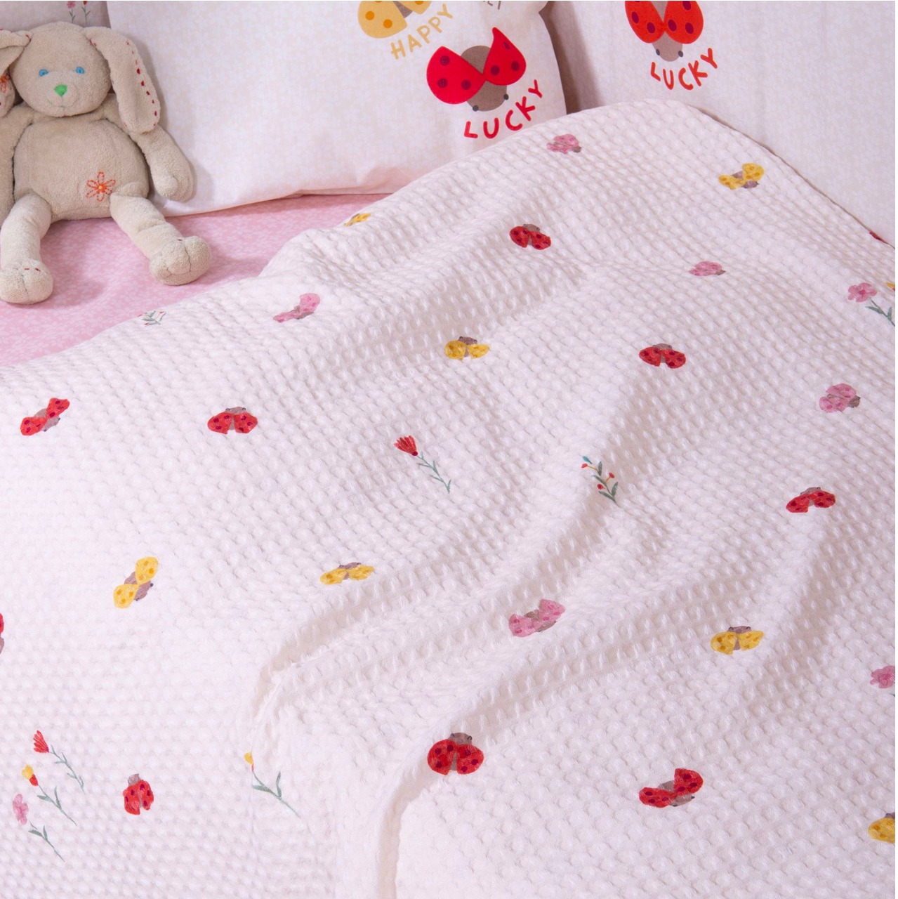 NEF NEF HOMEWARE BABY LADY BUG cotbed piquet blanket 80x110cm ecru 037363