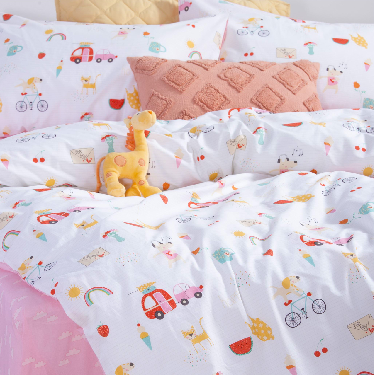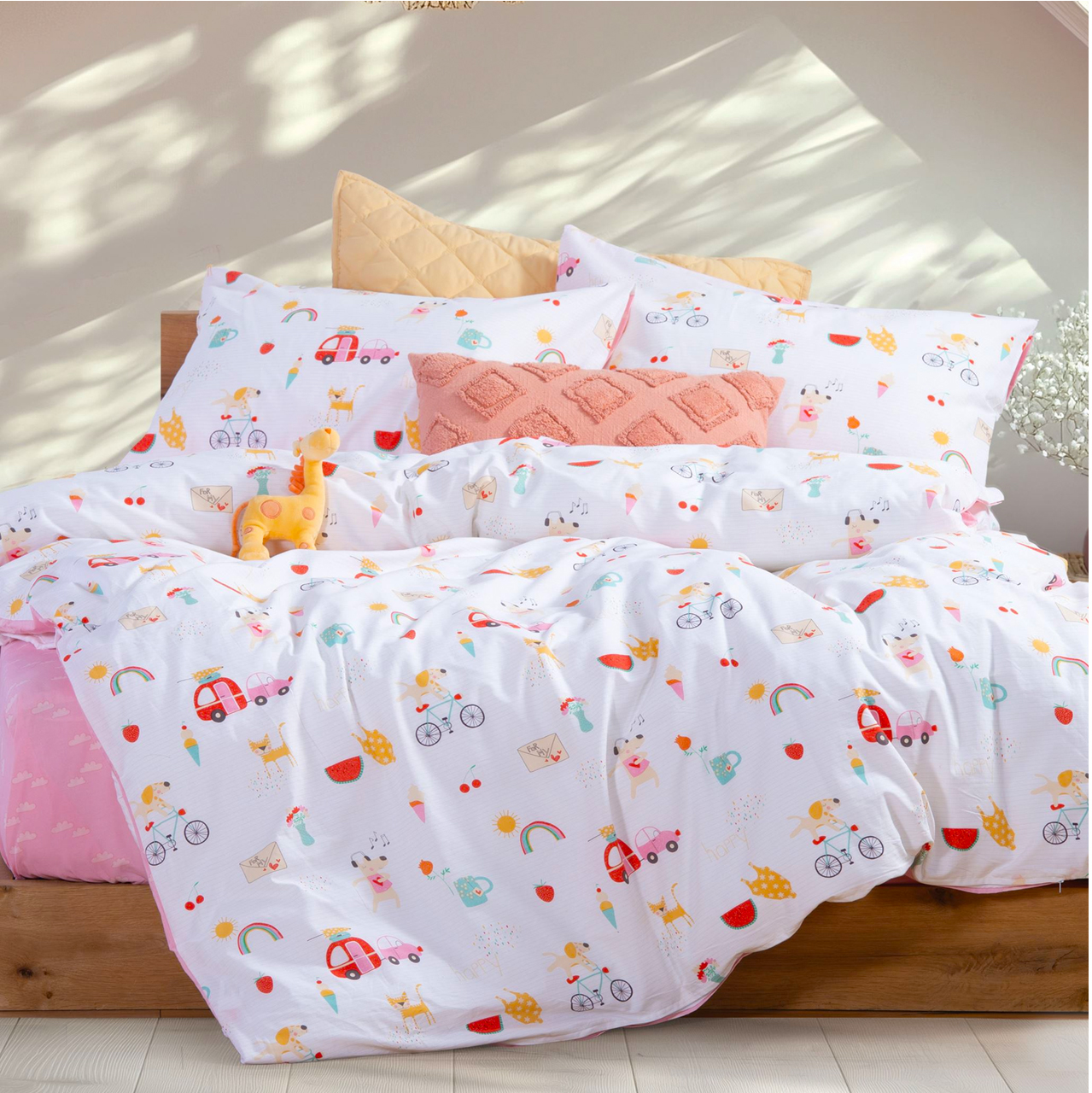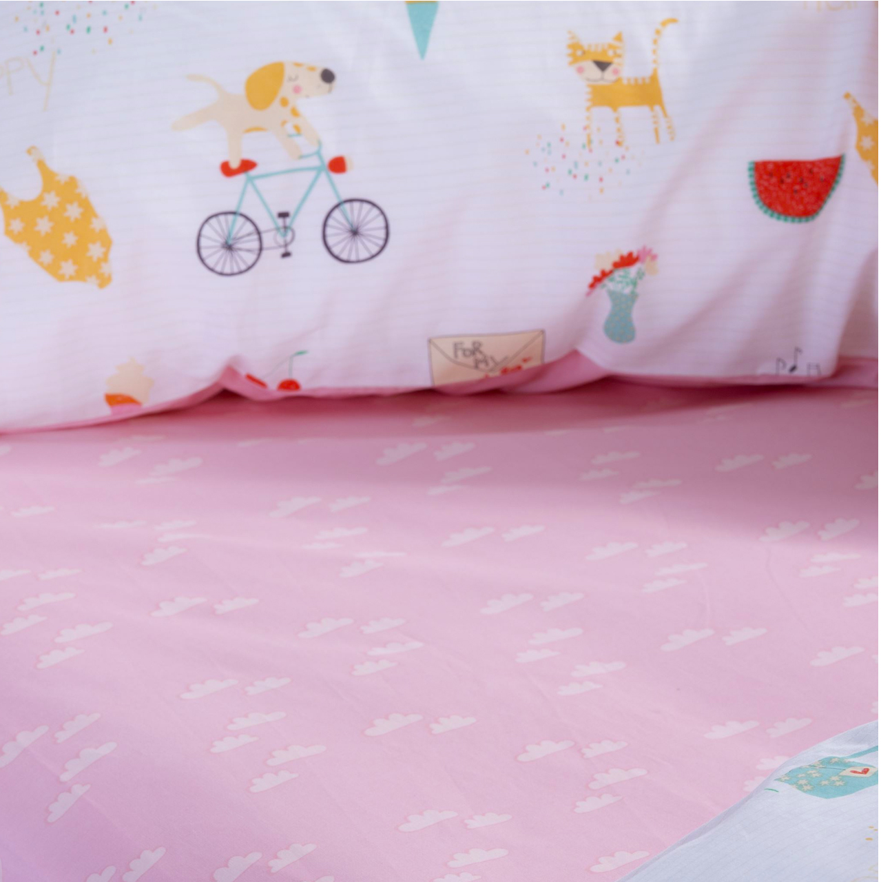NEF NEF HOMEWARE JUNIOR HAPPY TODAY single size bedsheets set 170x260cm white pink 037255