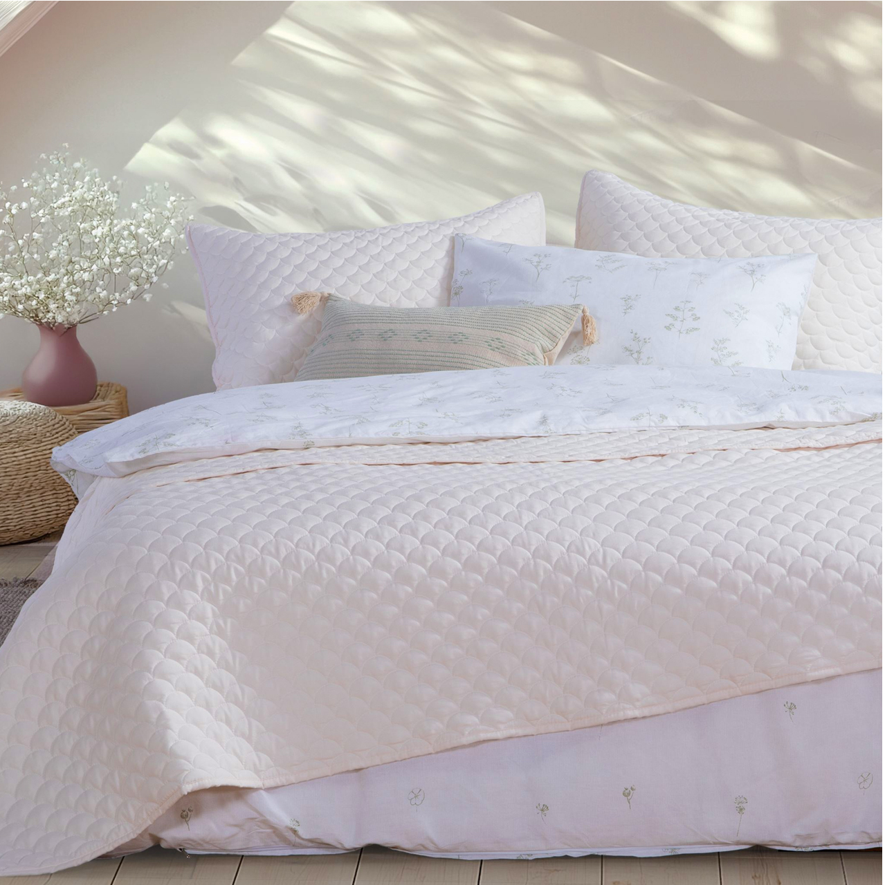 Queen size bedspread dimension 230x240cm, with fabric of 100% microfiber and polyester filling.