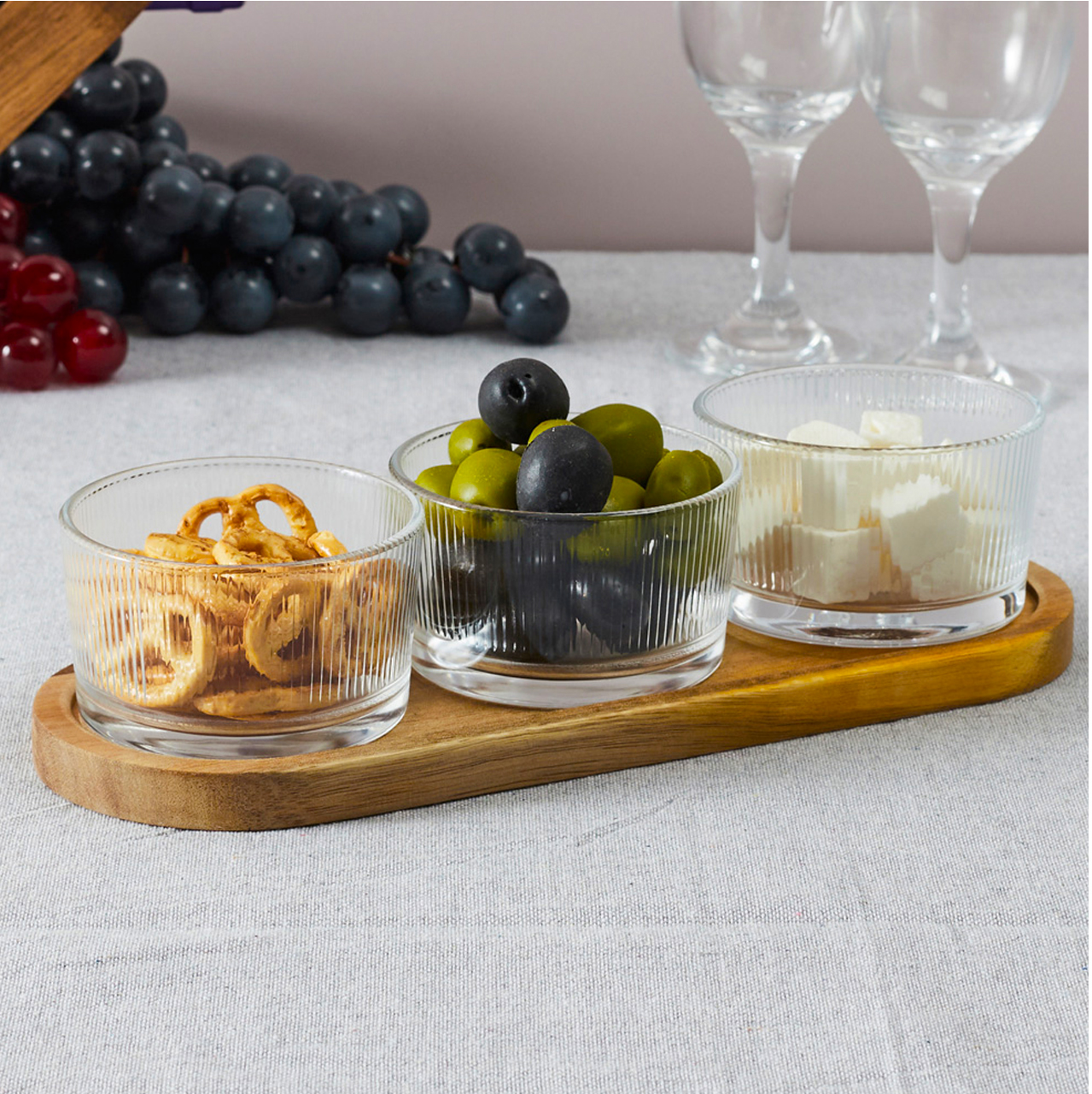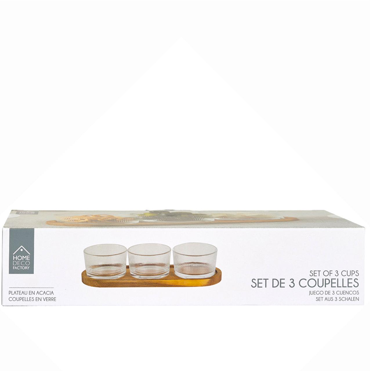 Coctail glass set of 3pcs bowl on acacia base KA0349