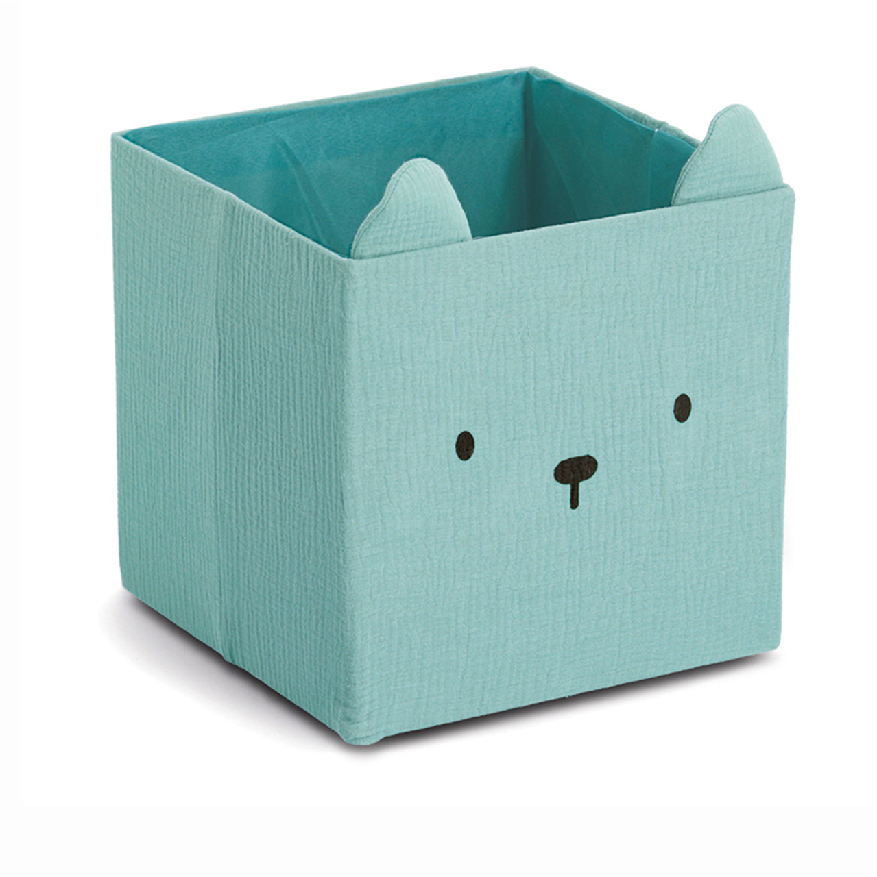Organize your childs room easily and beautifully with this practical and cute storage box with a teddy bear design in a sweet mint shade. Made of lightweight but durable fabric, it is ideal for storing toys, clothes or books. It folds when not in use. Perfect solution for a stylish classroom!