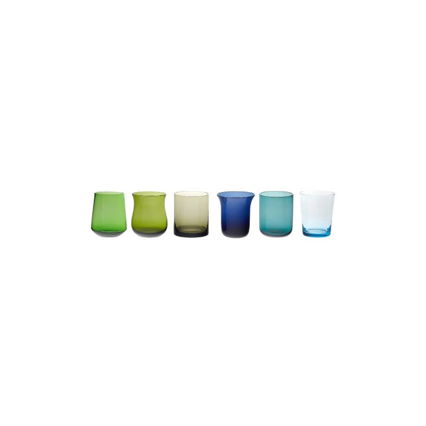 Liqueur glasses set/6 in various shades and shapes