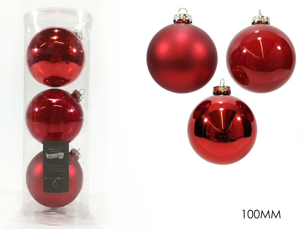 Set of 3 glass red balls in 3 textures 10cm