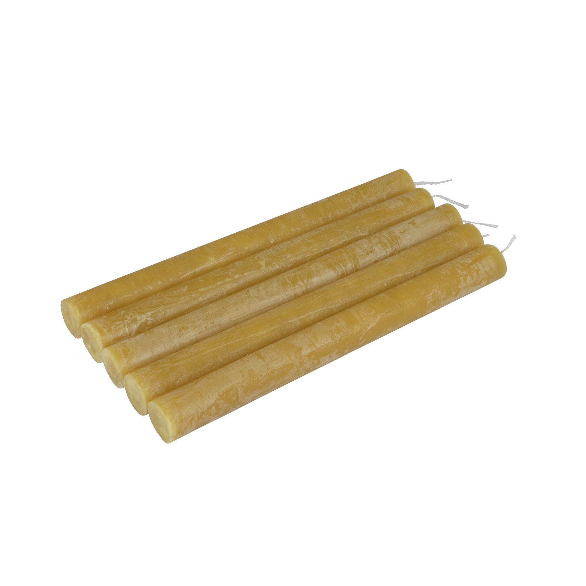 The set of 5 candlesticks includes five candles with a yellow color and a rustic design in the shape of a Sparmachetto. These candles add an atmospheric and warm feel to any space and are ideal for decorating and creating a relaxing atmosphere at home or on special occasions.