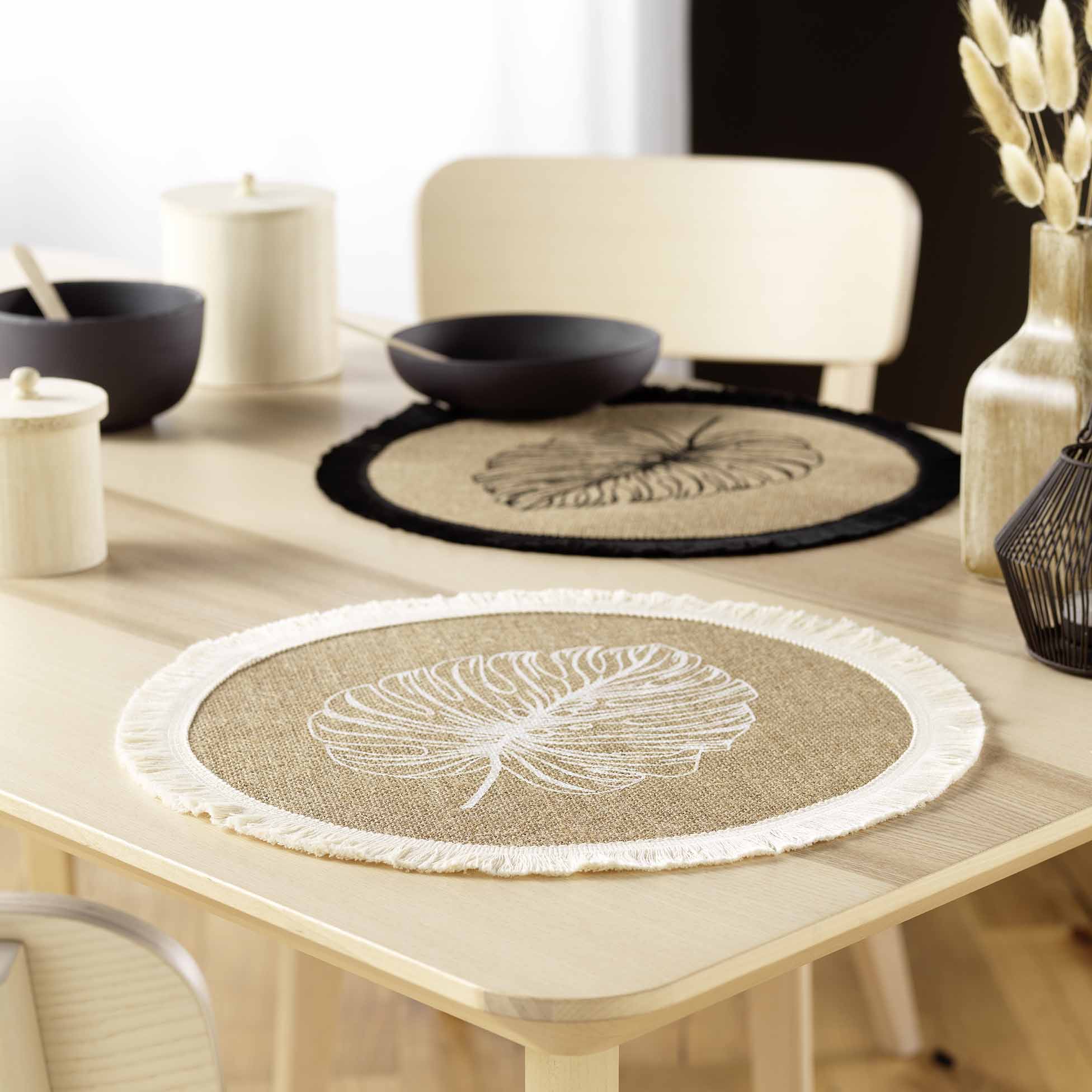 Jute placemats are primarily used to place plates, glasses and cutlery when serving food. They are made from a natural material, jute, which is a plant tissue. Jute placemats add a natural, rustic feel to the table and protect the surface from liquids and scratches.