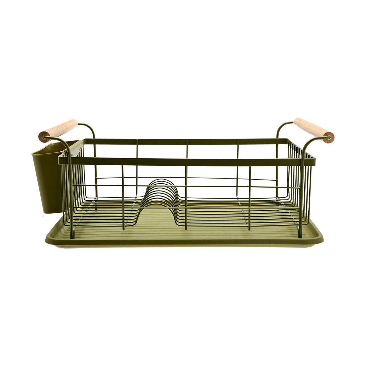 Sink dryer metallic olive with bamboo handles 44x32x20cm