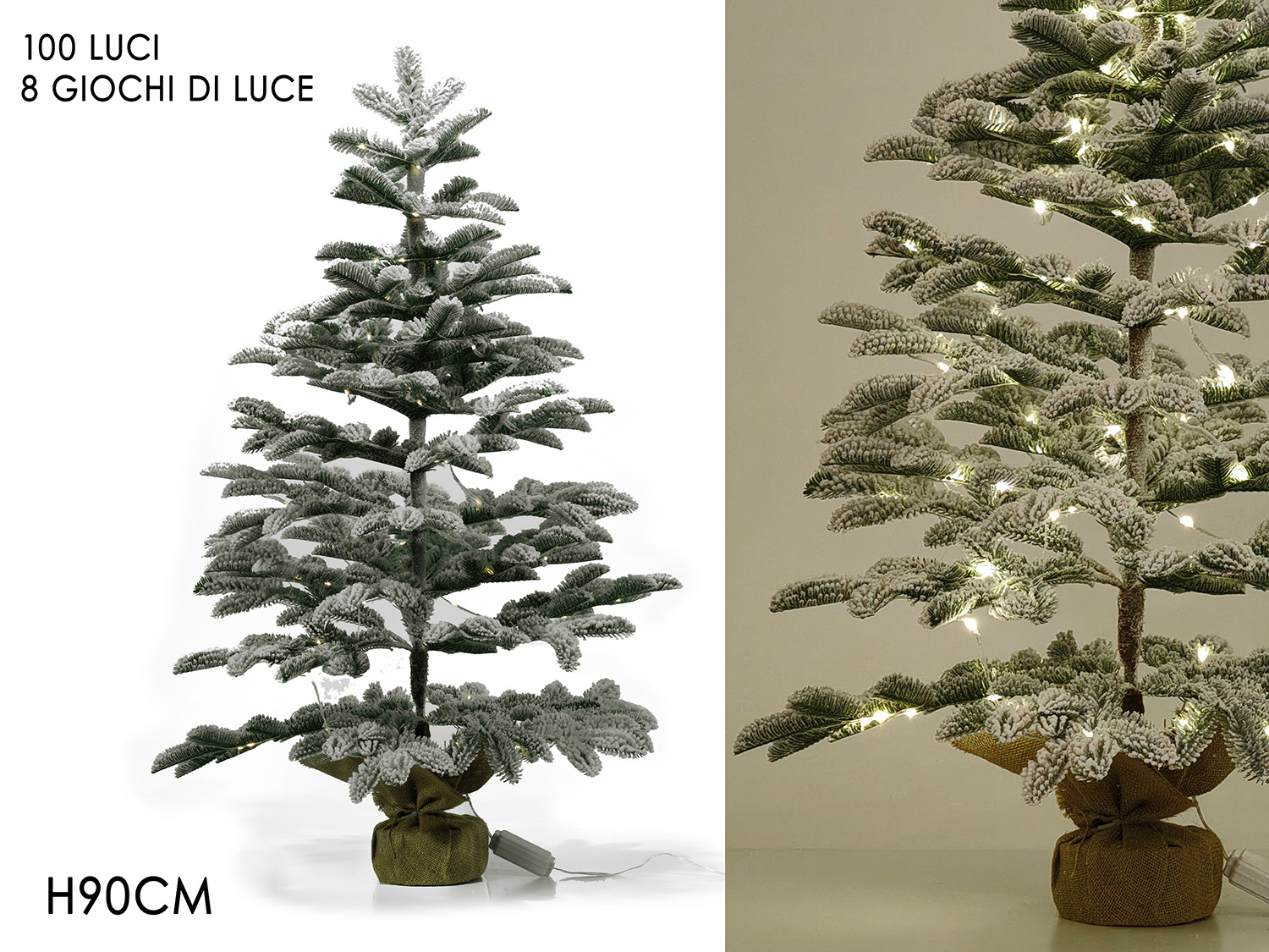 Snowy Christmas tree with 100 LED lights 90cm, powered by electricity