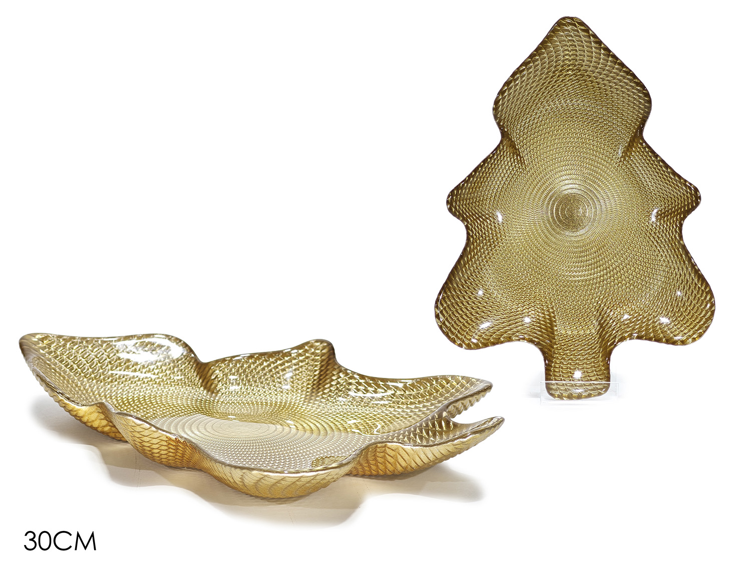 Πιατελα Δεντρο Γυαλινη Χρυση Υ30Εκ