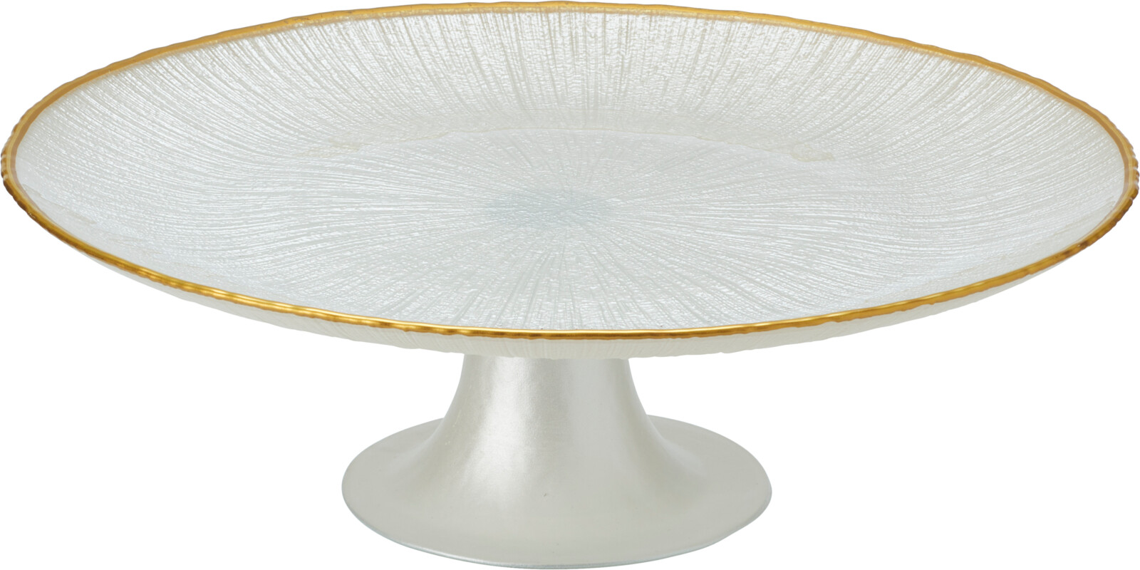 Τουρτιερα Γυαλινη Λευκη Με Χρυση Γραμμη 28Εκ