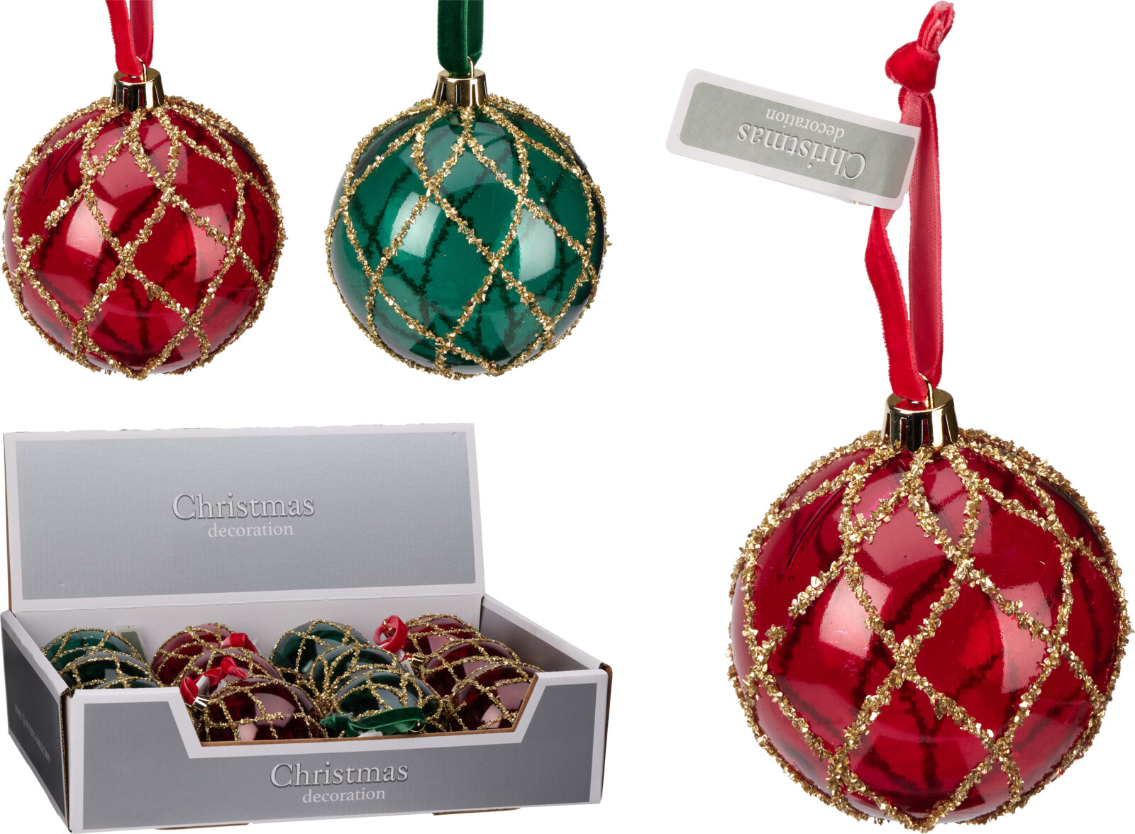 Στολιδι Μπαλα Κοκκινο Πρασινο Glitter Diamond Σε 2 Σχεδια 8Εκ
