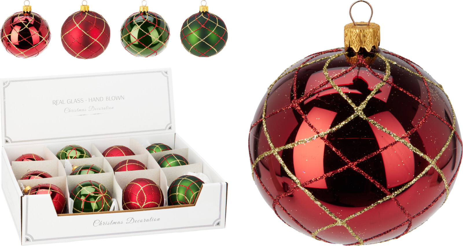 Γυαλινη Mπαλα Με Χιαστι Γραμμες Με Glitter 8Εκ