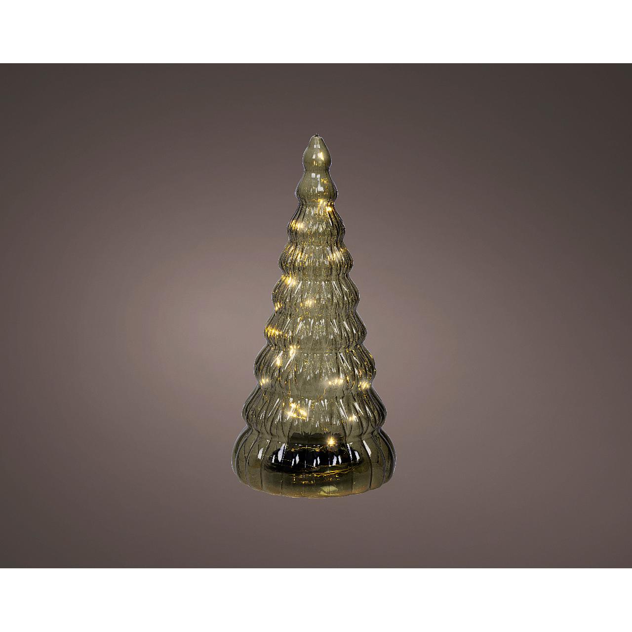 Χριστουγεννιάτικο διακοσμητικό περιστρεφόμενο γυάλινο δέντρο με led πράσινο 11x39cm
