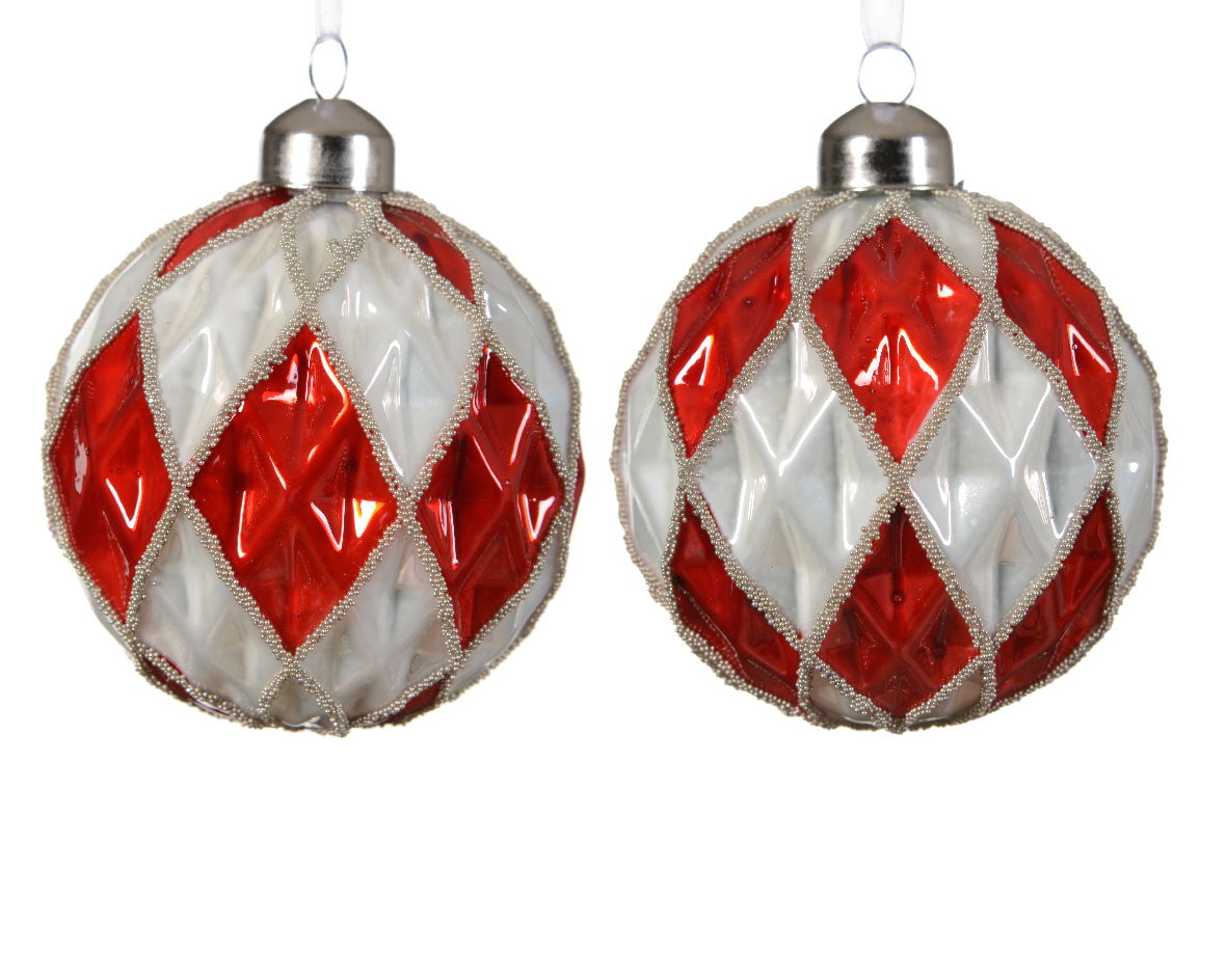 Χριστουγεννιάτικο στολίδι μπάλα με glitter και χάντρες 8cm 2 σχέδια