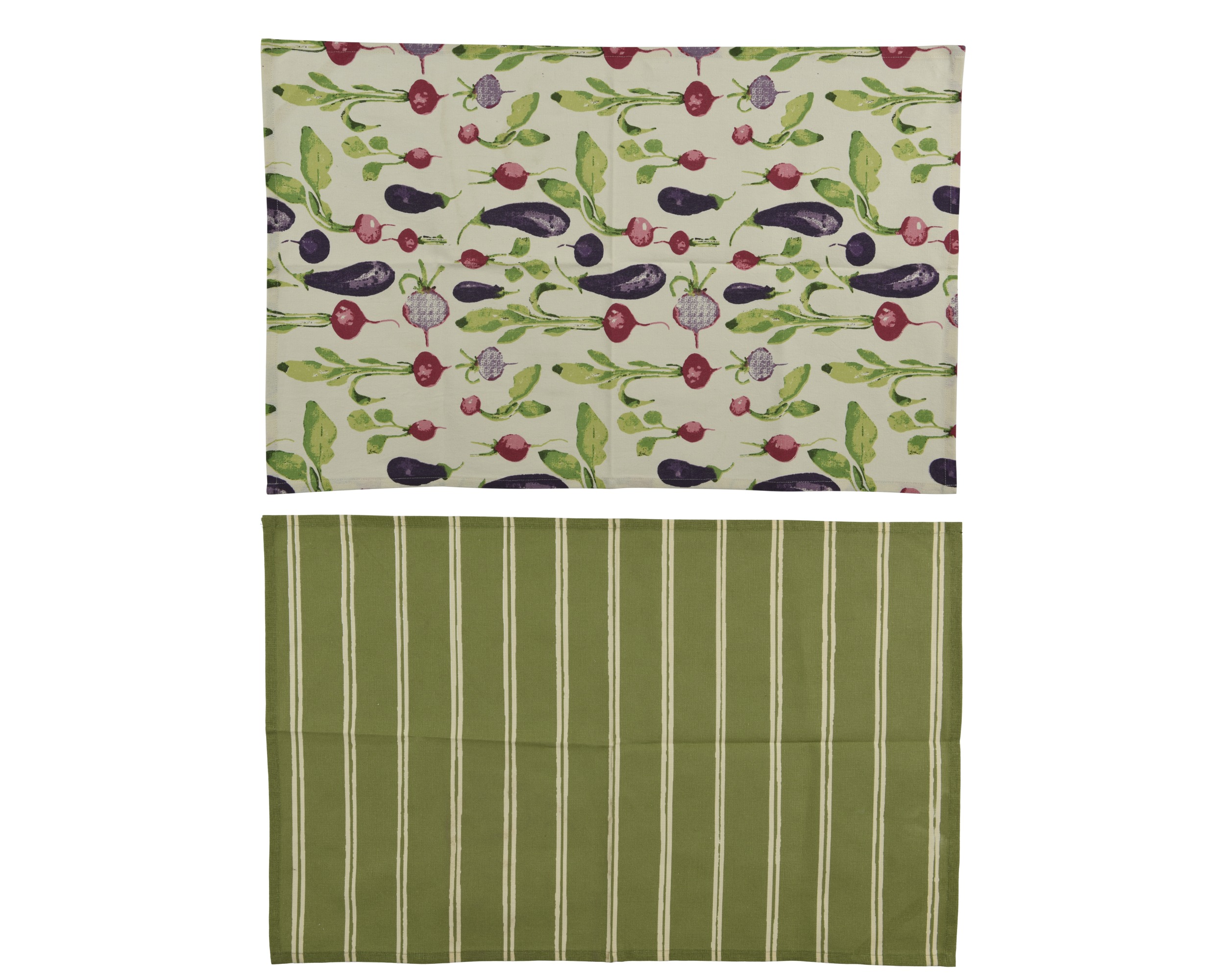 Πετσέτα κουζίνας με σχέδιο λαχανικών και ρίγες σε πράσινο χρώμα