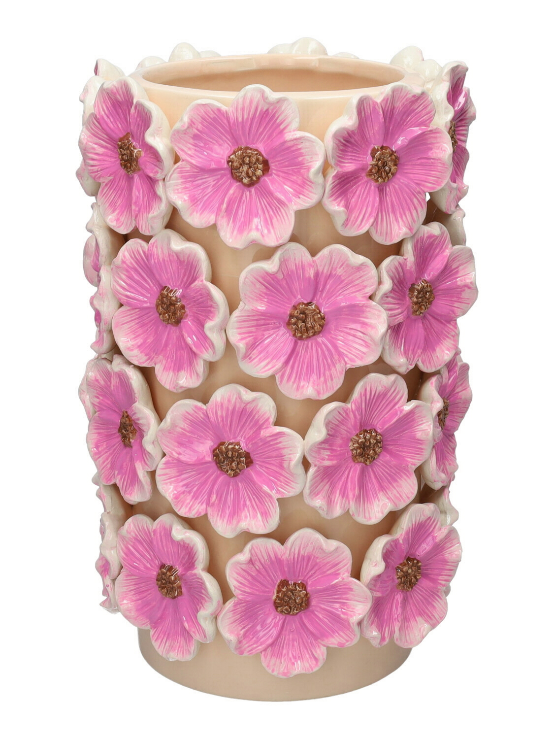 Βάζο στρογγυλο φουξια με πορτοκαλι λουλουδι