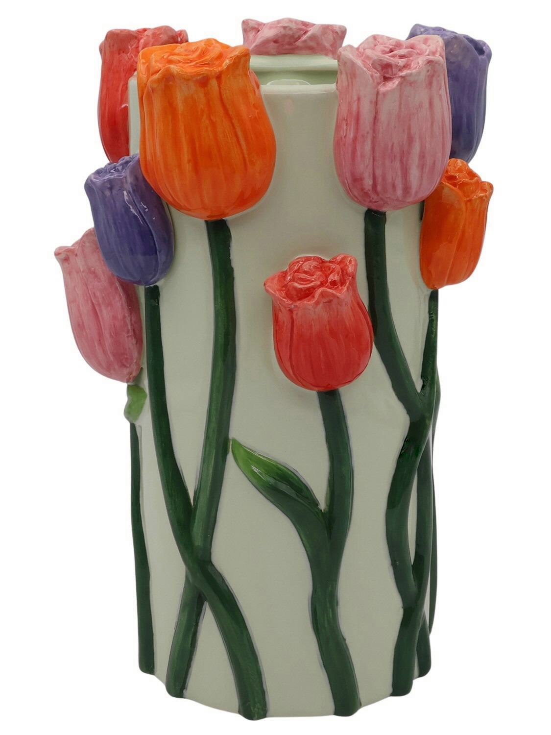 Βαζο tulpia πρασινο με πολυχρωμες τουλιπες