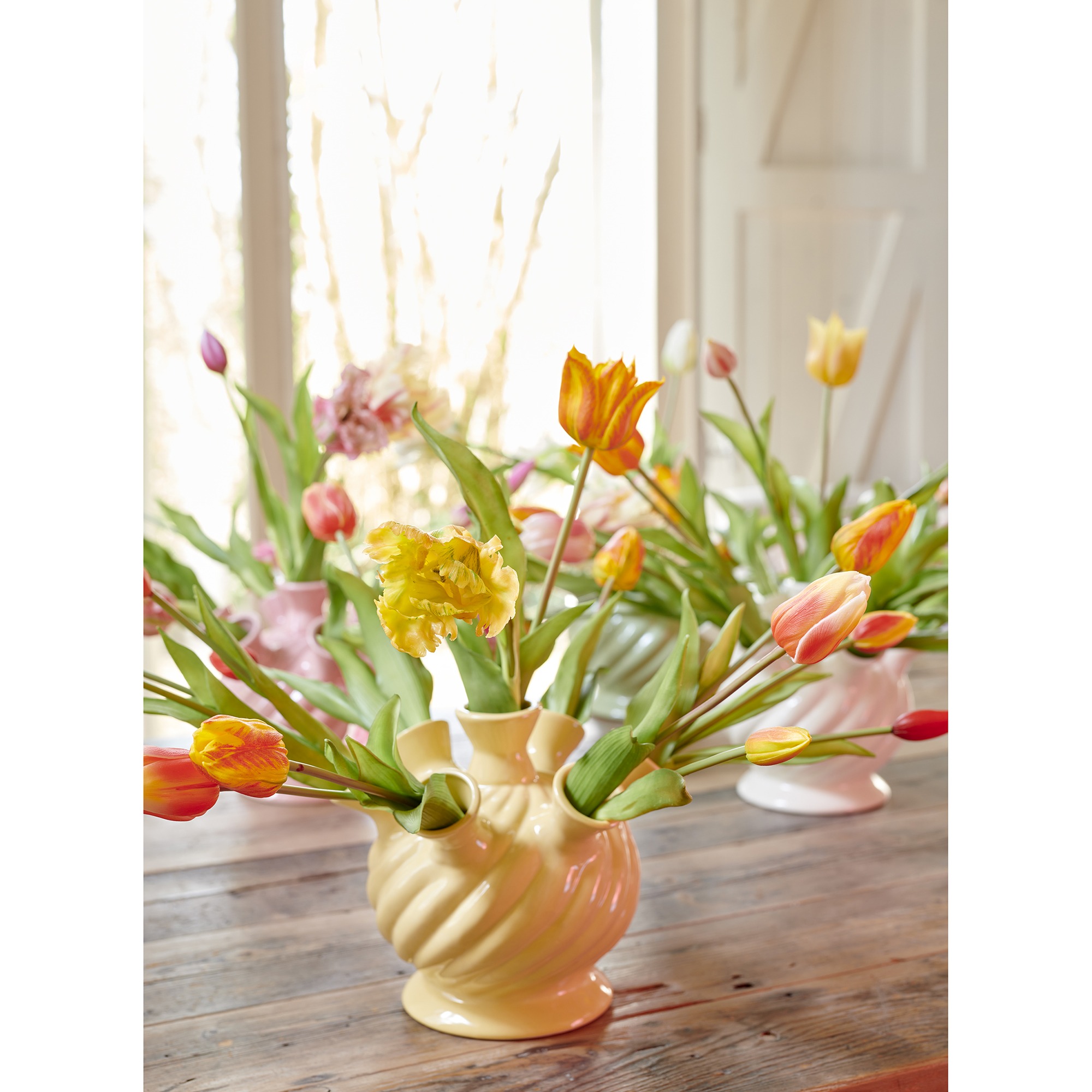Το βάζο Decoris ξεχωρίζει με τον μοντέρνο σχεδιασμό του και το ζωηρό κίτρινο χρώμα της πορσελάνης του. Διαθέτει ιδιαίτερο χαρακτήρα χάρη στα επτά ανοίγματα που κοσμούν την επιφάνειά του, δημιουργώντας μια παιχνιδιάρικη αισθητική.