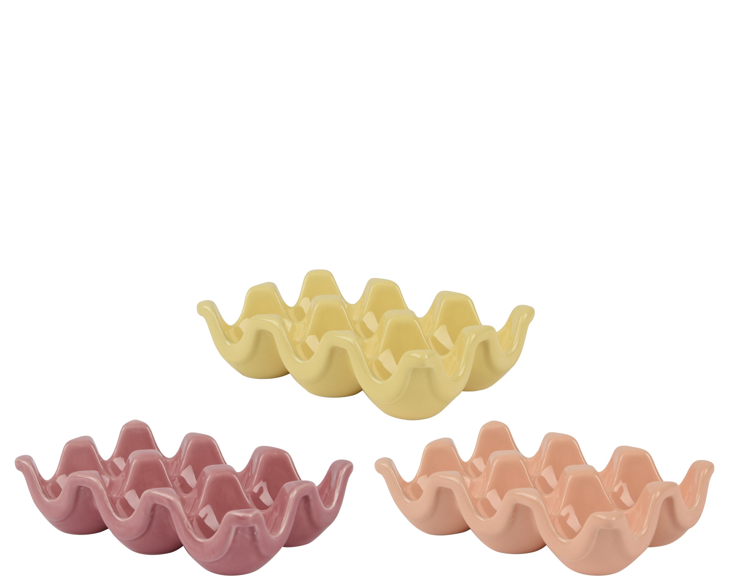Δώστε μια χαρούμενη και φωτεινή νότα στο πρωινό ή το brunch σας με αυτό το σετ αυγοθήκης από την Kitchen Goods. Οι χειροποίητες βάσεις είναι κατασκευασμένες από υψηλής ποιότητας δολομίτη και έχουν υποστεί επεξεργασία με γυαλιστερή, πολύχρωμη λάκα. Με τη κυματιστή τους μορφή και τις απαλές αποχρώσεις δημιουργούν μια ζωντανή αλλά εκλεπτυσμένη ατμόσφαιρα στον χώρο σας.