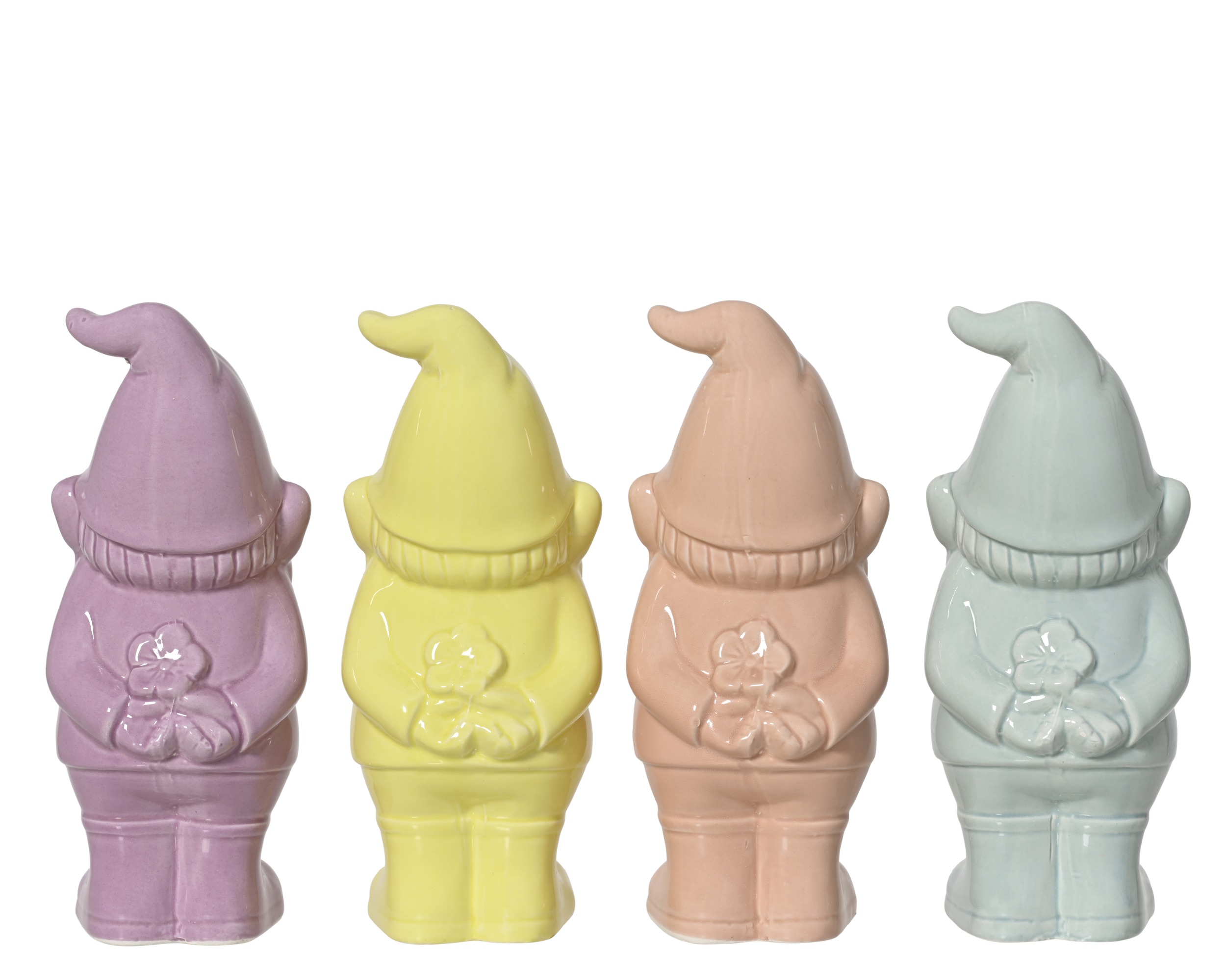 Αυτές οι χειροποίητες διακοσμητικές φιγούρες κήπου από την Decoris αποτελούν ένα χαρούμενο σύνολο τεσσάρων κεραμικών στοιχείων με ματ φινίρισμα.
