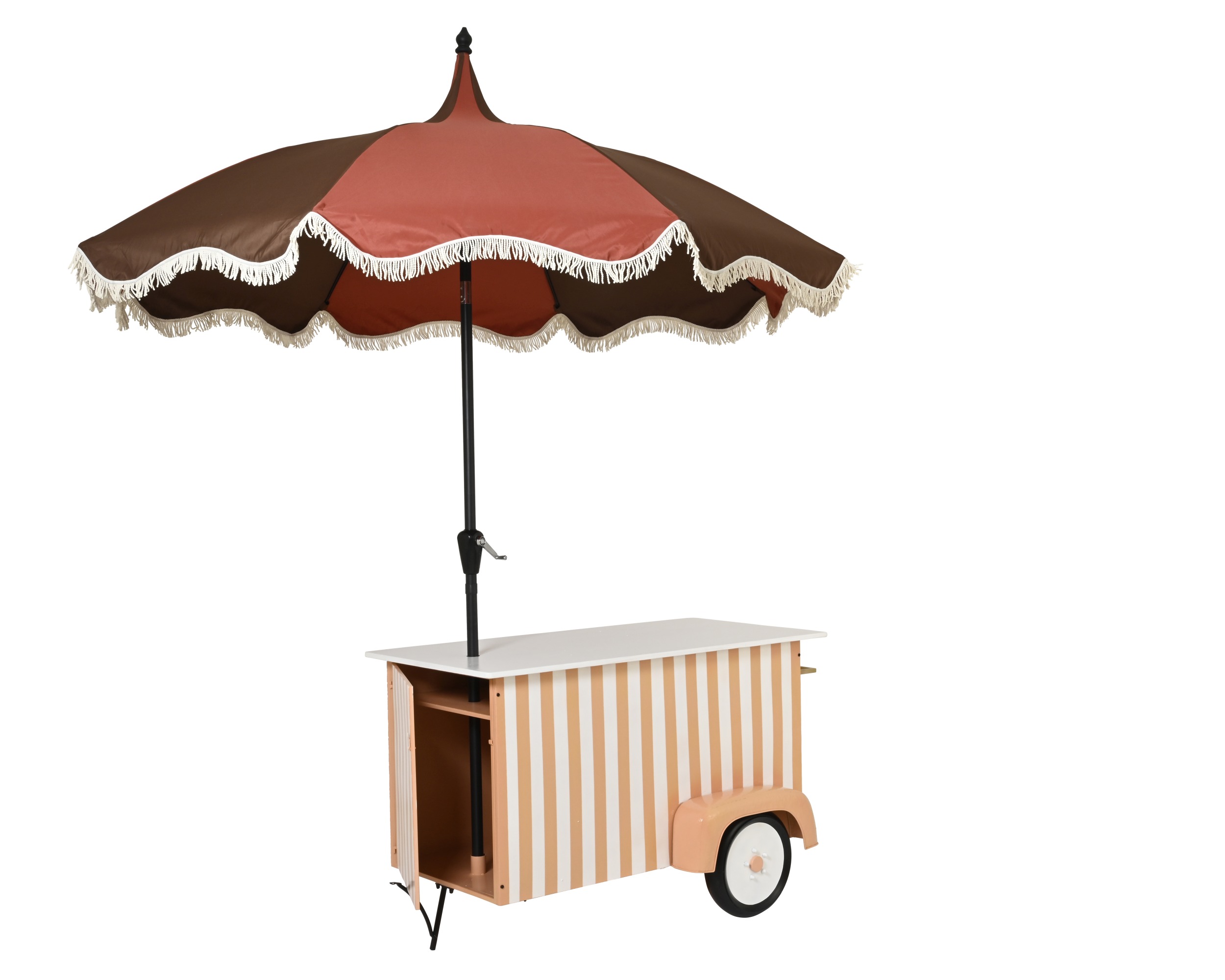 Κατασκευασμένο από ανθεκτικό σίδηρο, συνδυάζει τη μακροχρόνια αντοχή με ένα ρετρό στυλ που ταιριάζει αρμονικά σε πολλούς χώρους. Μπορεί να λειτουργήσει είτε ως διακοσμητικό στοιχείο είτε ως πρακτικό βοηθητικό έπιπλο σε εκδηλώσεις.