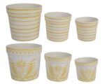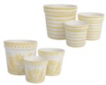 Το διακριτικό floral μοτίβο σε συνδυασμό με τις κυκλικές λεπτομέρειες προσδίδει μια παιχνιδιάρικη αισθητική χωρίς να αποσπά την προσοχή. Οι γλάστρες είναι κατάλληλες για εσωτερικό χώρο και το νερό-απωθητικό φινίρισμα εξασφαλίζει τη μακροχρόνια διατήρηση τους. Ιδανικές για χώρους όπου συνυπάρχουν η ζεστασιά με την ατμόσφαιρα.