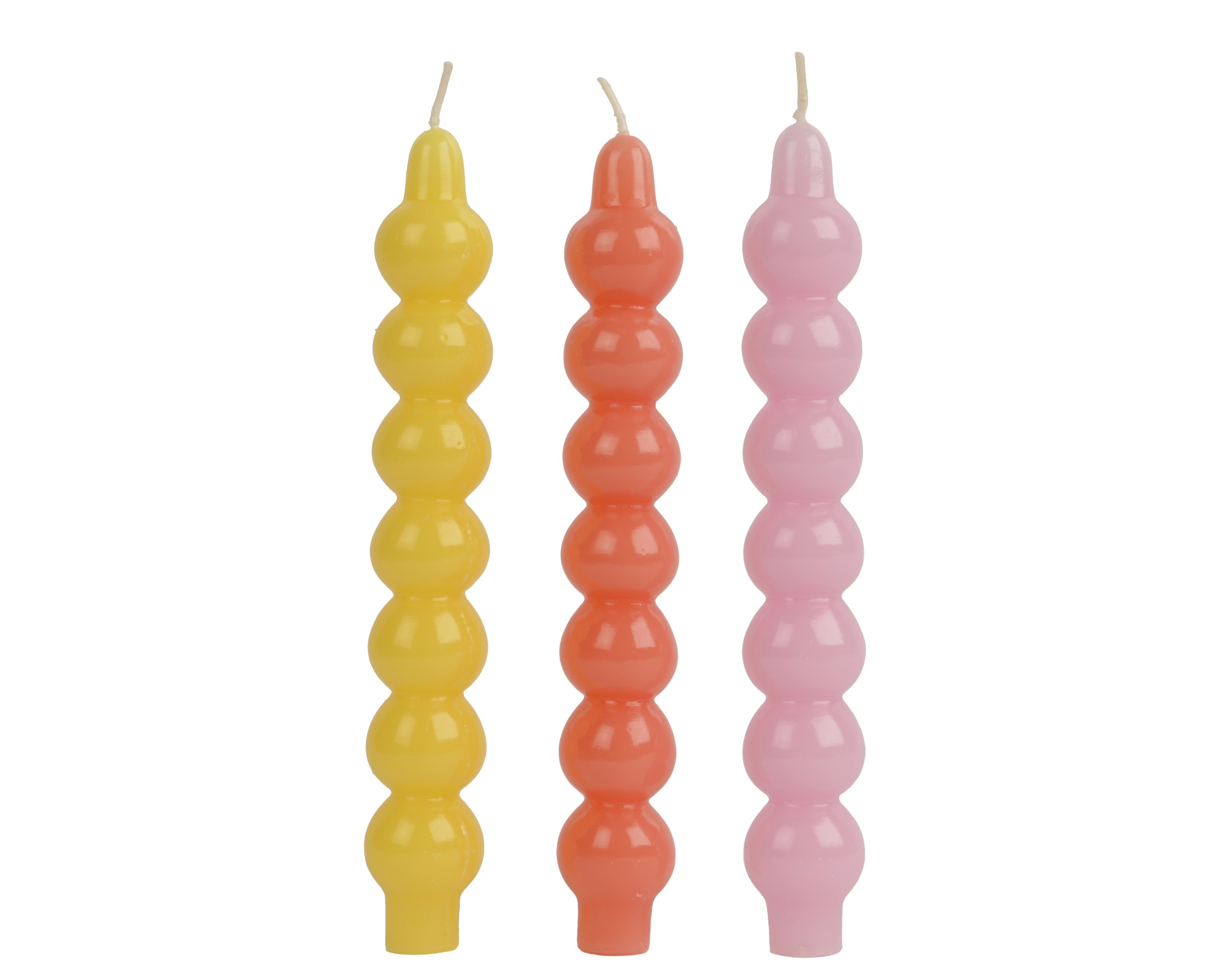 Το σύνολο των τριών κεριών προσφέρει μια διασκεδαστική αισθητική στο τραπέζι σας ή στον χώρο σας, συνδυάζοντας τη ζεστασιά του κεριού με τη χαρά των ζωντανών χρωμάτων. Η σύνθεση περιλαμβάνει κεριά διάρκειας περίπου 8 ωρών το καθένα και είναι κατάλληλη αποκλειστικά για εσωτερικούς χώρους.