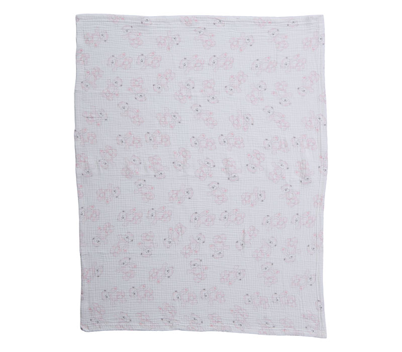 Το κουβερτάκι Teddy από βαμβακερό ύφασμα σε απαλό μπεζ χρώμα, με χαριτωμένο σχέδιο αρκουδάκι, είναι ιδανικό για κούνια. Διατίθεται στις διαστάσεις 75×100 εκατοστά και προσφέρει ζεστασιά και άνεση στο παιδικό δωμάτιο.