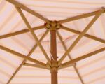 Ο στιβαρός μεταλλικός άξονας διαμέτρου 32mm από επιψευδαργυρωμένο σίδερο συνοδεύεται από έξι μεταλλικά νεύρα που εξασφαλίζουν μεγάλη αντοχή και σταθερότητα. Το ύφασμα από πολυεστέρα υψηλής αντοχής με πιστοποίηση UV (400) και υδροφοβία προστατεύει από τον ήλιο και τη βροχή, διατηρώντας την άριστη κατάστασή του για πολλά χρόνια.