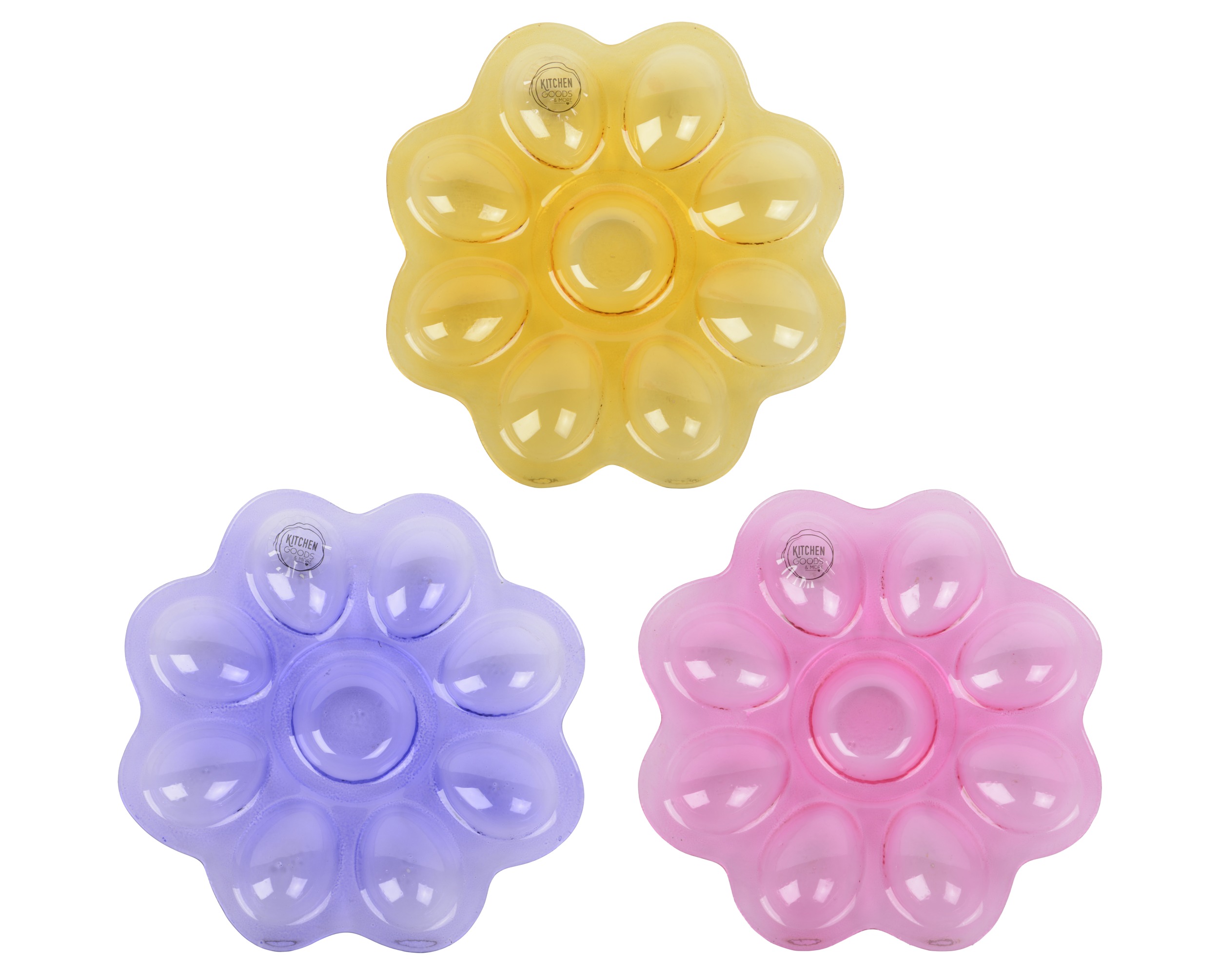 Δώστε χρώμα και ζωντάνια στο τραπέζι σας με αυτό το ιδιαίτερο σετ πιάτων της Kitchen Goods. Κάθε πιάτο διαθέτει πρωτότυπο σχέδιο σε σχήμα λουλουδιού με επτά βαθιά τμήματα, κατασκευασμένο από διάφανο γυαλί σε απαλές χρωματικές αποχρώσεις. Ο συνδυασμός του διαφανούς υλικού με την παιχνιδιάρικη μορφή τα καθιστά εντυπωσιακή προσθήκη σε κάθε περίσταση. Τα πολύχρωμα πιάτα ταιριάζουν άριστα σε διάφορα διακοσμητικά στυλ και δημιουργούν μια χαρούμενη ατμόσφαιρα τόσο σε εσωτερικούς όσο και σε εξωτερικούς χώρους.
