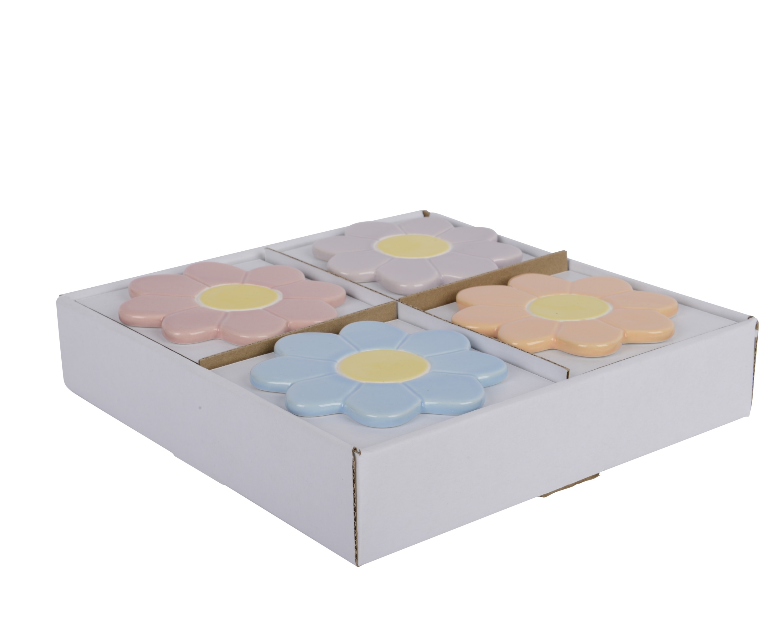 Τα σουπλά Decoris δημιουργούν μια χαρούμενη και χαλαρή ατμόσφαιρα στο τραπέζι σας. Πρόκειται για ένα σετ τεσσάρων σουπλακιών σε σχήμα λουλουδιού με πλούσια χρώματα. Κατασκευασμένα από υψηλής ποιότητας πορσελάνη, προσδίδουν ζωντάνια στα ποτά σας με απαλές αποχρώσεις που συνδυάζονται αρμονικά γύρω από ένα φωτεινό κίτρινο κέντρο. Το παιχνιδιάρικο σχέδιό τους και τα ζωηρά χρώματα τα καθιστούν ιδανική επιλογή για μοντέρνες αλλά και αγροτικές (country style) διακοσμήσεις.