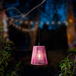 Φανάρι κήπου ηλιακό από ρατάν σε ροζ χρώμα