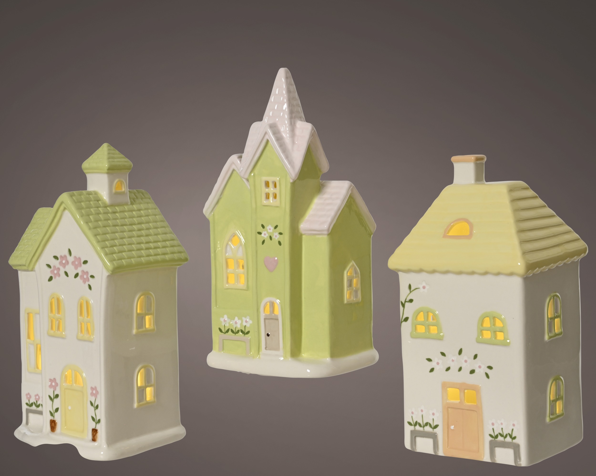 Φωτιστικό σπίτι πορσελάνης LED με διακοσμητικά λουλούδια εσωτερικού χώρου