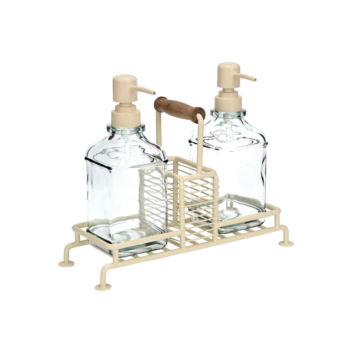 Δοχεια Υγρου Πιατων Allure 2x300ml με Μεταλλικη Βαση και Θηκη για Σφουγγαρι Ivory
