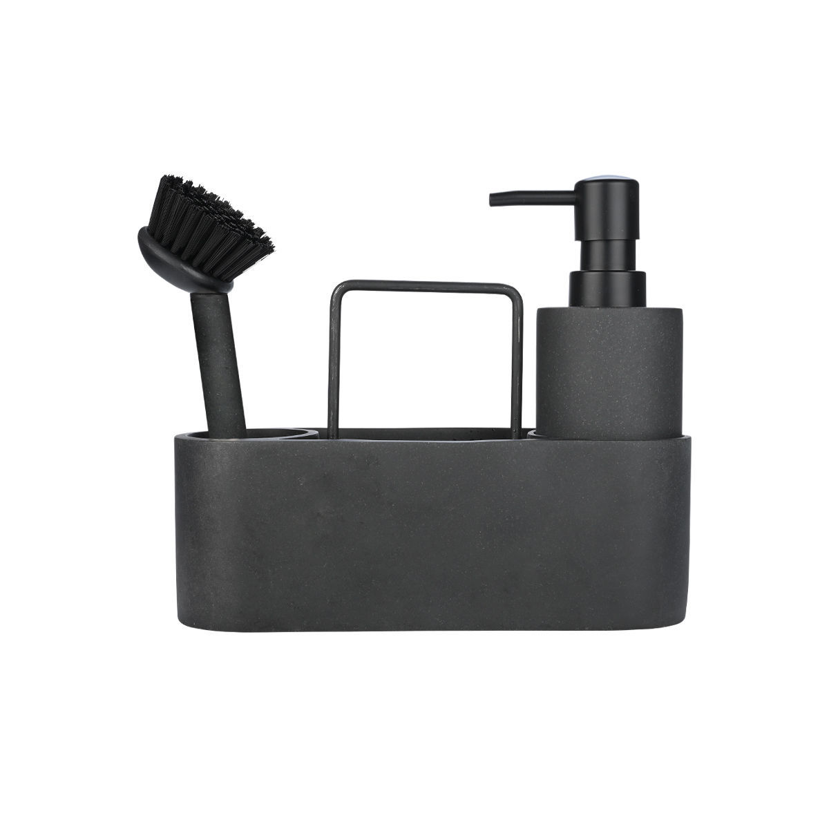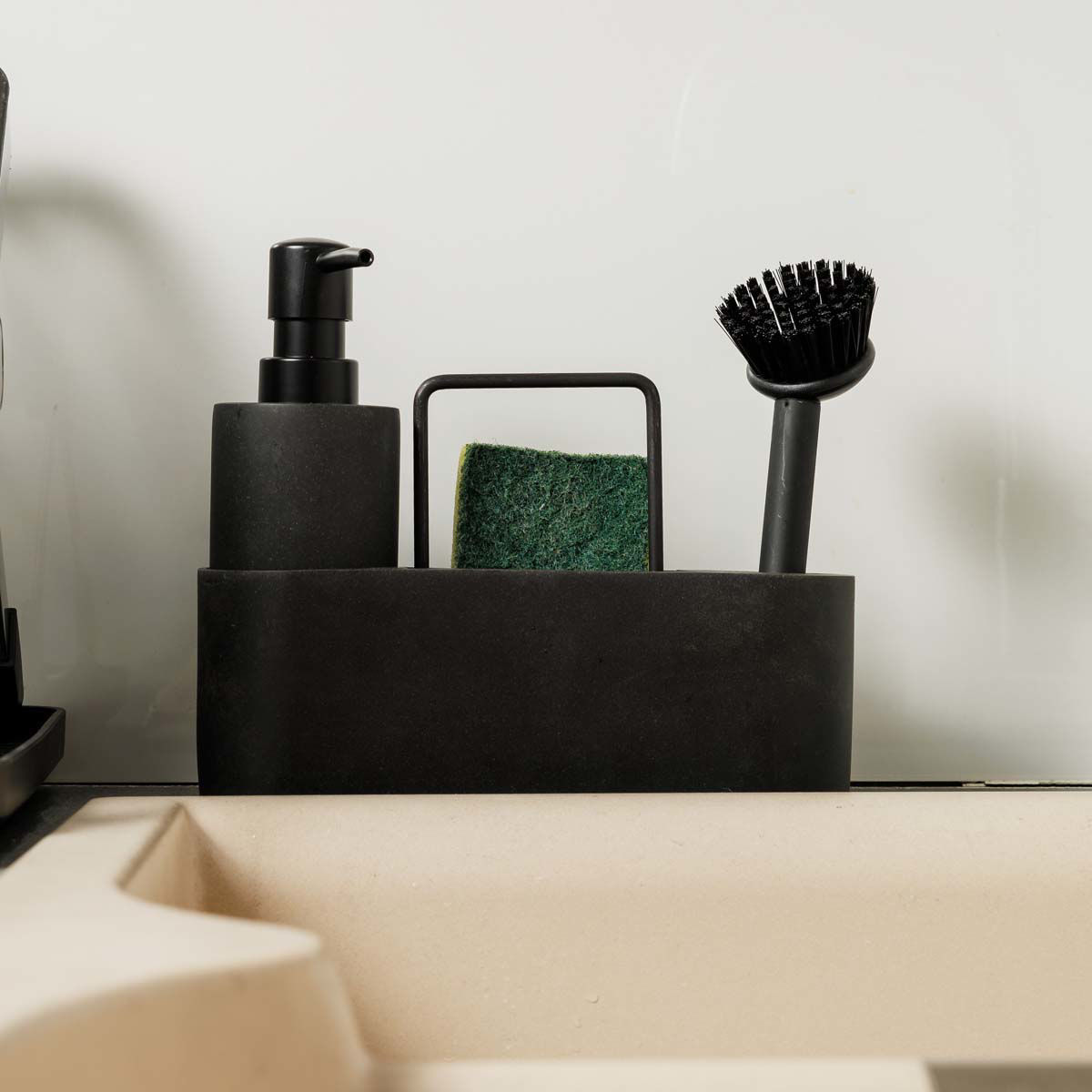 Δοχειο Υγρου Πιατων με Βουρτσα Καθαρισμου και Θηκη για Σφουγγαρι Μαυρο