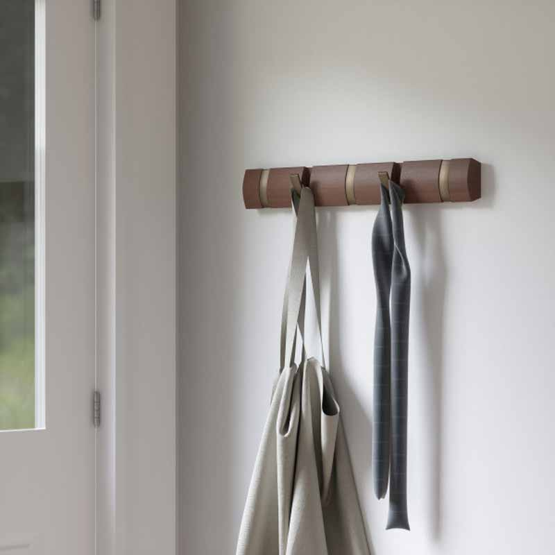 Flip κρεμάστρα τοίχου 5 θέσεων ξύλινη καρυδί 53x6x3cm