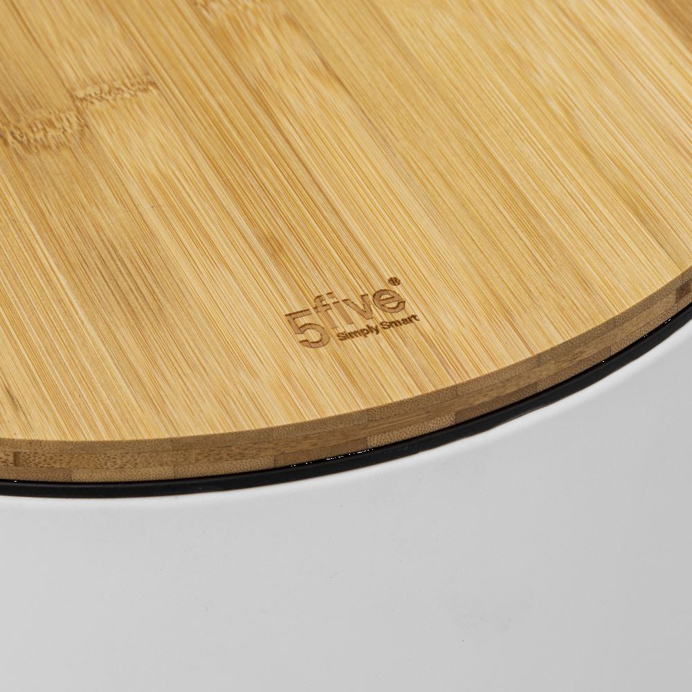 Κάδος πεντάλ λευκό μεταλλικό και καπάκι από μπαμπού 30L