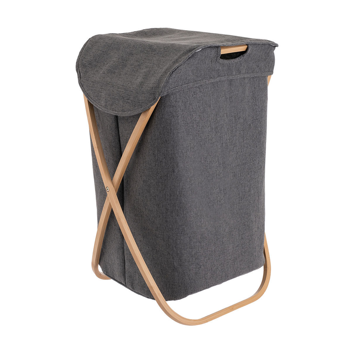 Καλαθι Απλυτων Bamboo Essentials 40x40x70cm με Θηκη Πολυεστερα Πτυσσομενο Γκρι