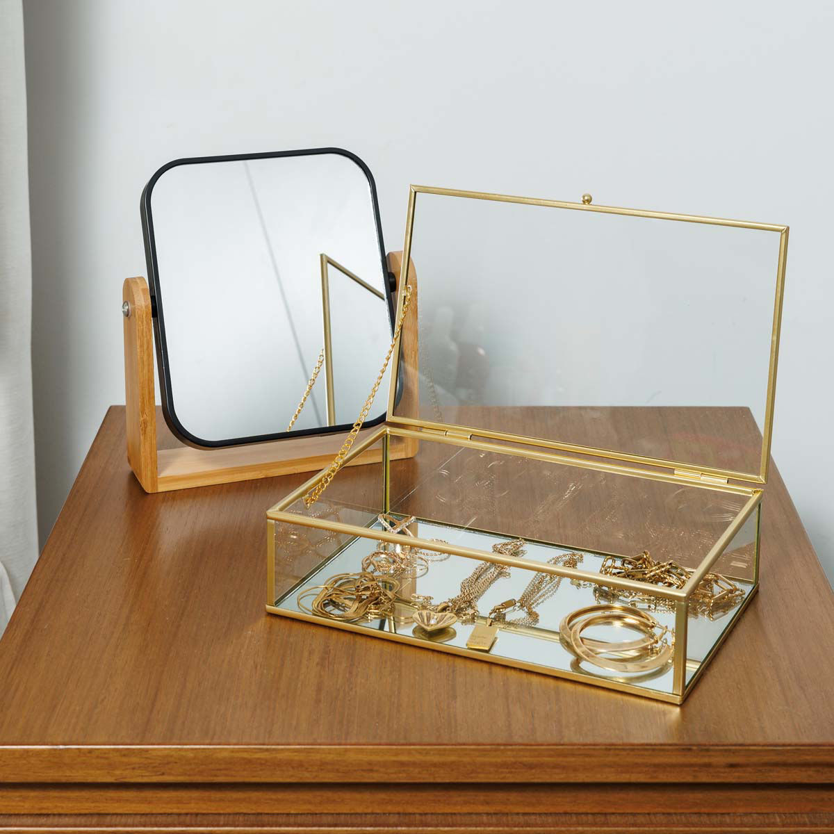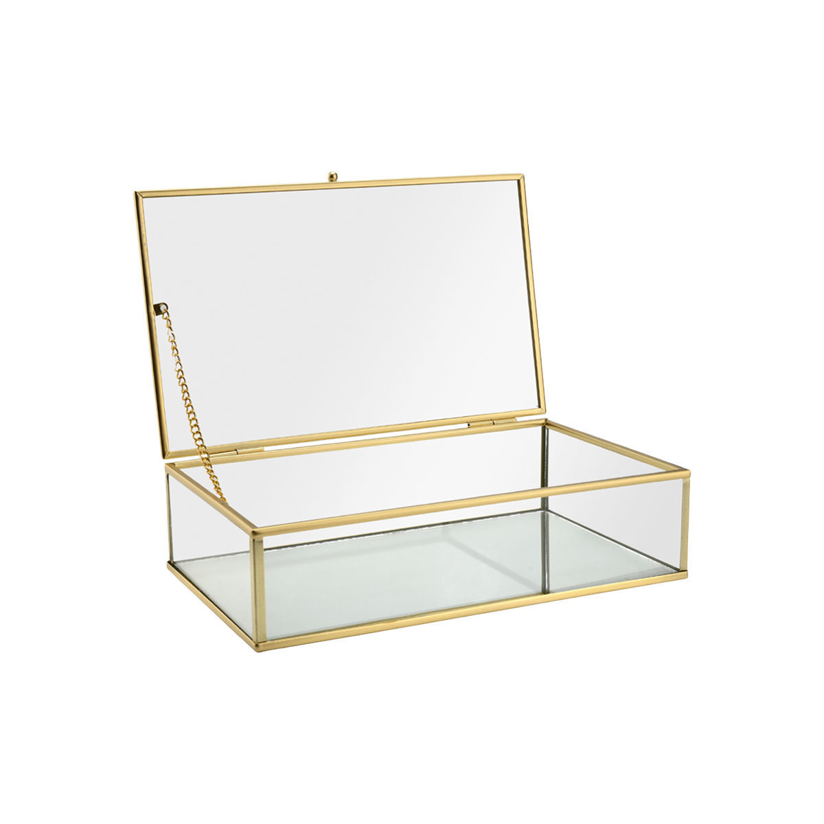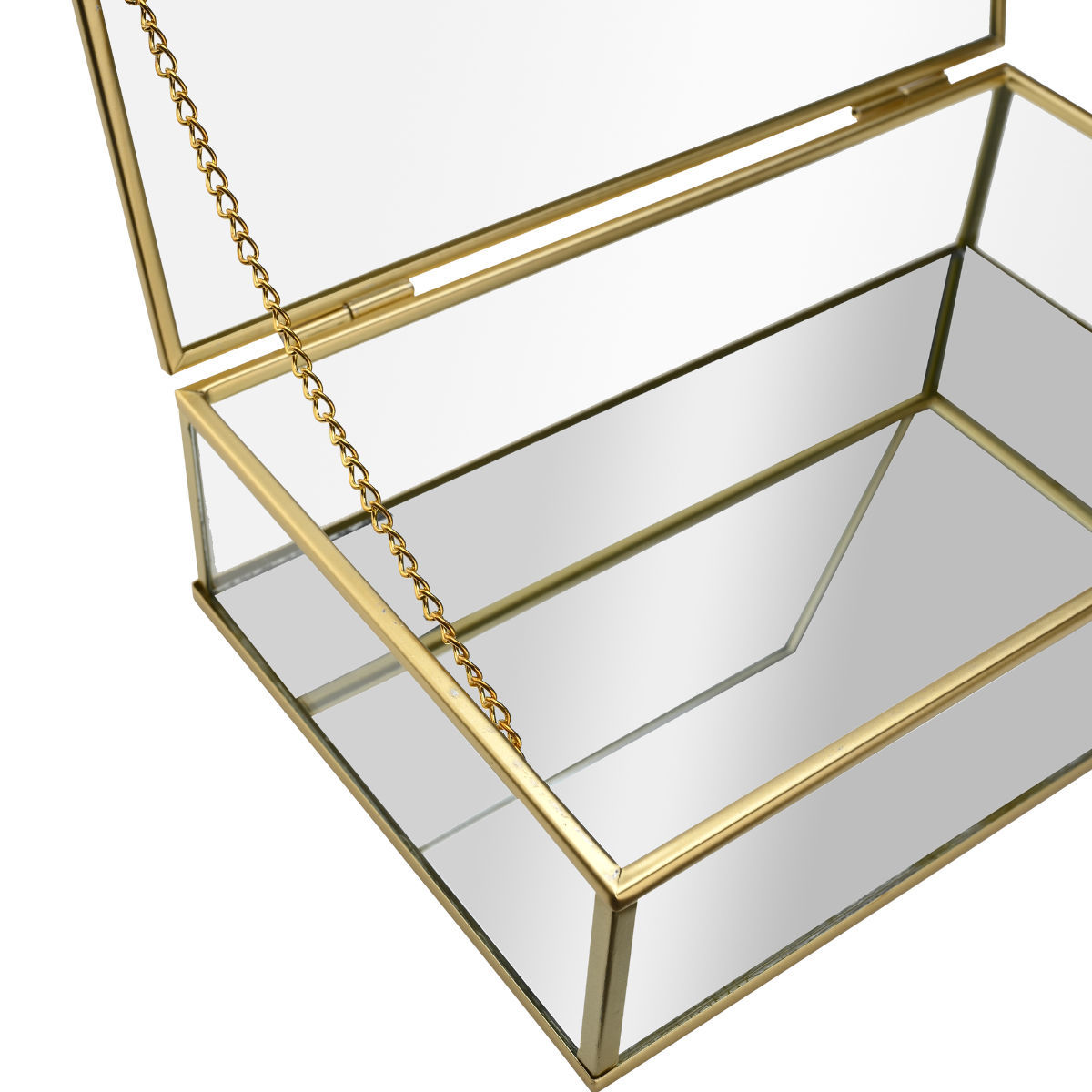Κουτι Οργανωσης Γυαλινο με Καθρεπτη και Χρυσο Μεταλλικο Πλαισιο 24x14x6cm