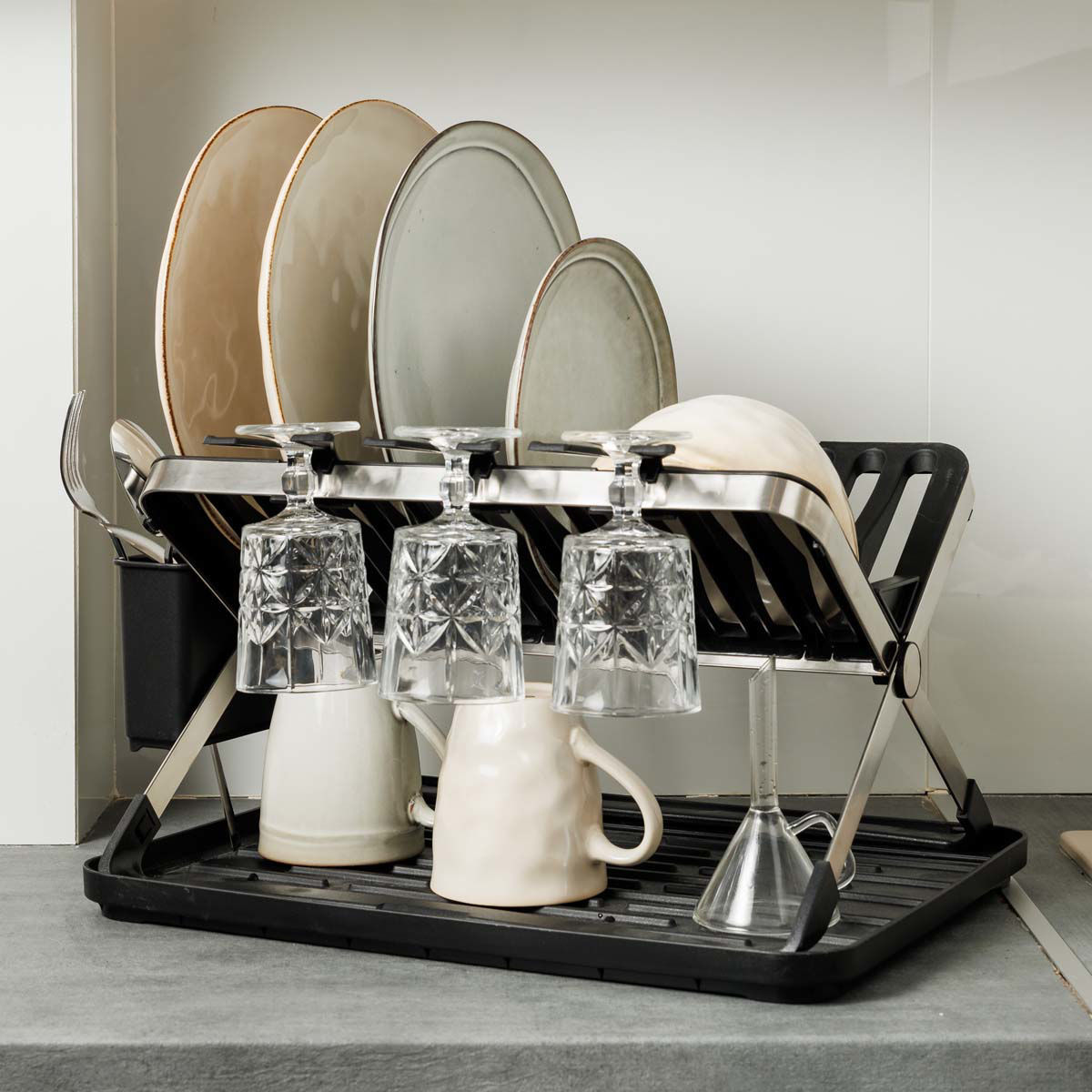 Πιατοθηκη Αναδιπλουμενη Ανοξειδωτη 2 Επιπεδων 48×35.4×27.2cm Μαυρη